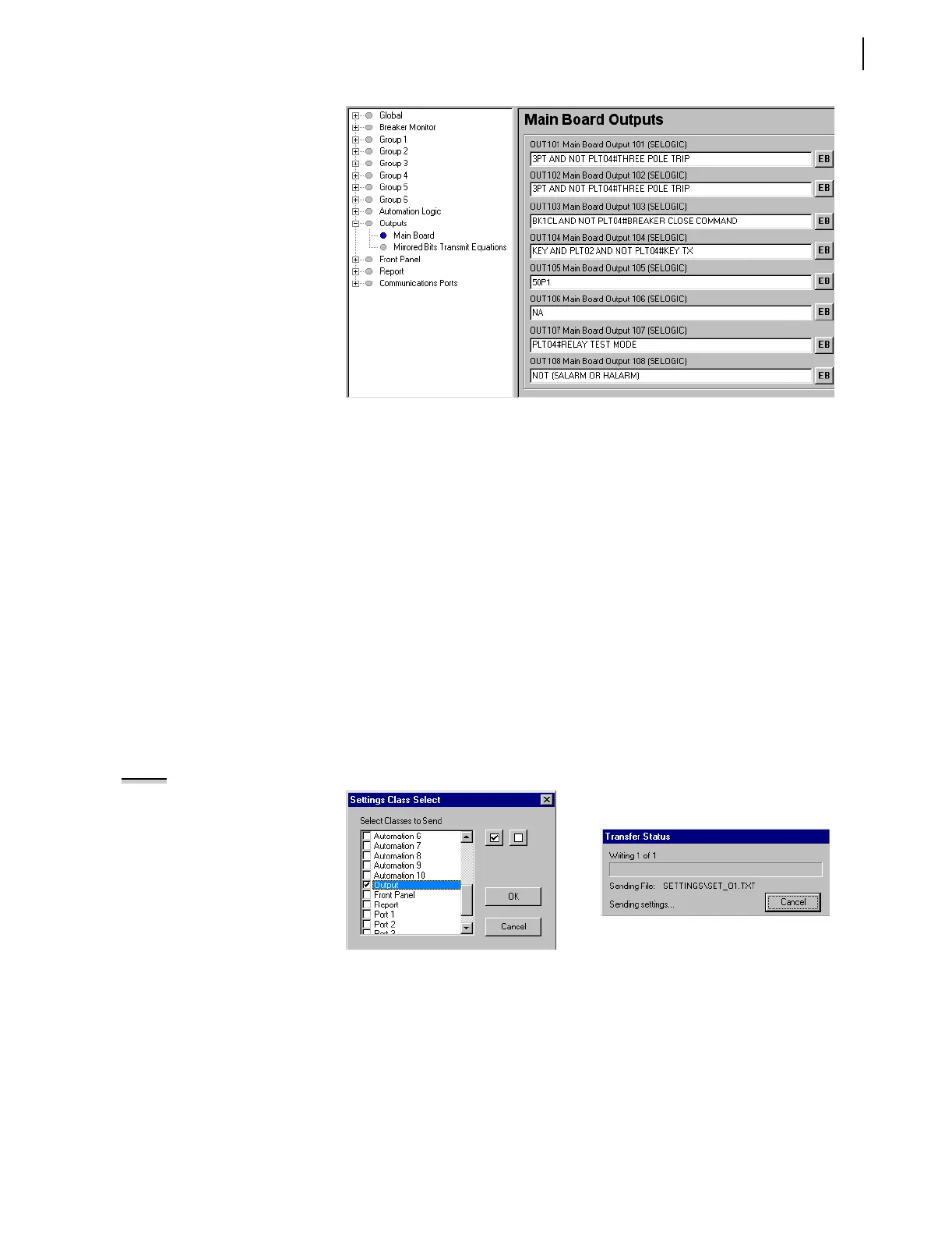 Figure 6.12 Uploading Output Settings to the SEL-421 Relay.