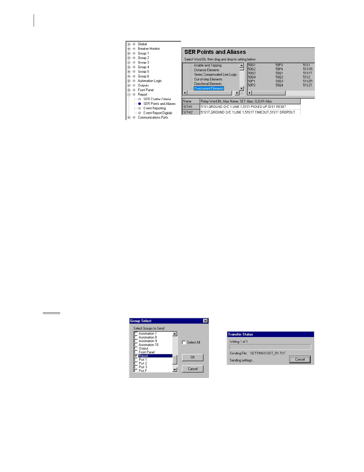 Figure 6.15 Uploading Group 1 and Report Settings to SEL-421 Relay.