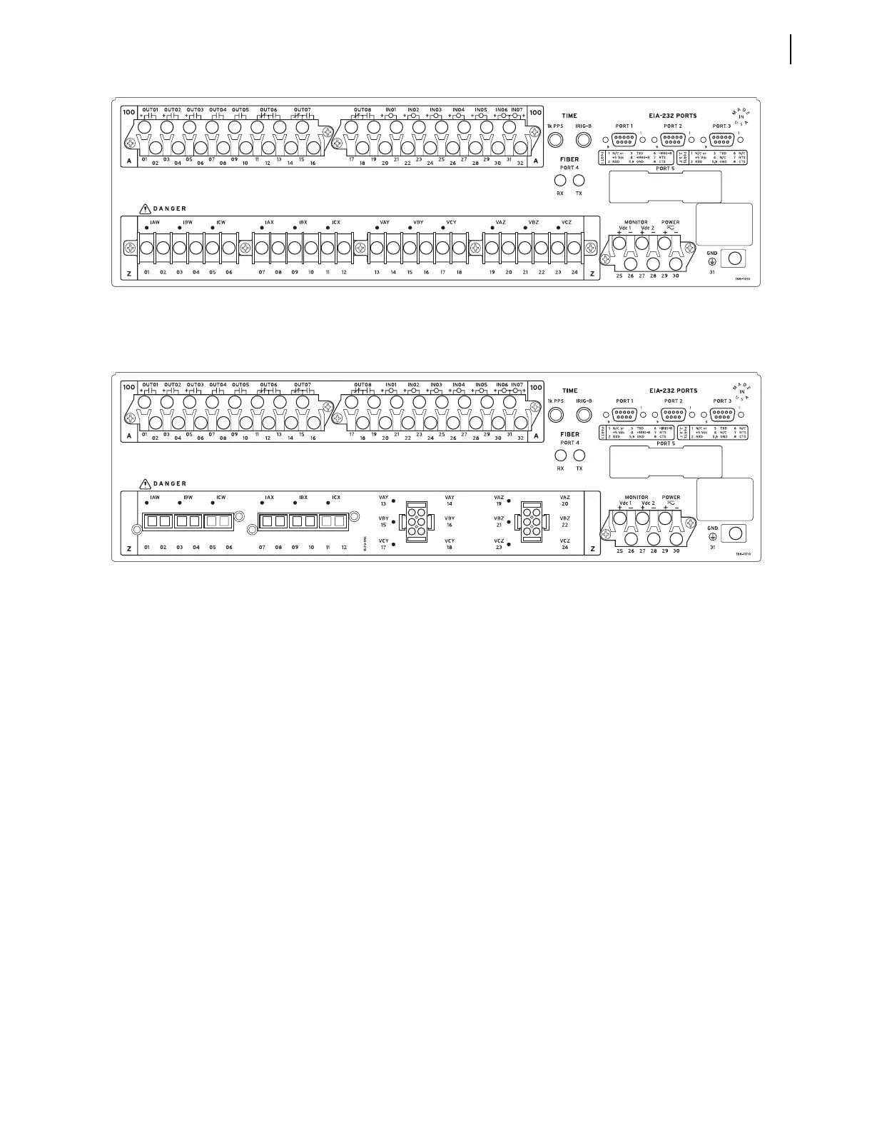 The relay also accepts two sets of three-phase, four-wire (wye) potentials from