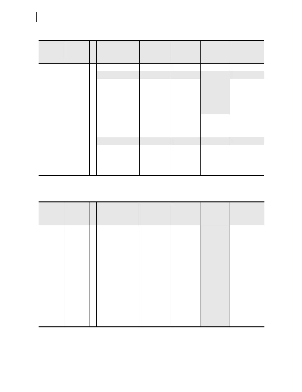 Shaded cells indicate settings forced to given values and hidden