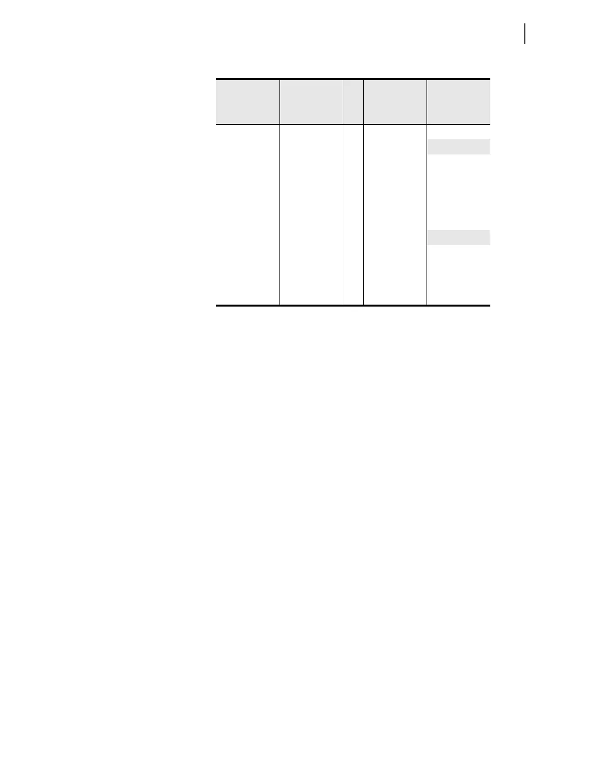 Shaded cells indicate settings forced to given values and hidden