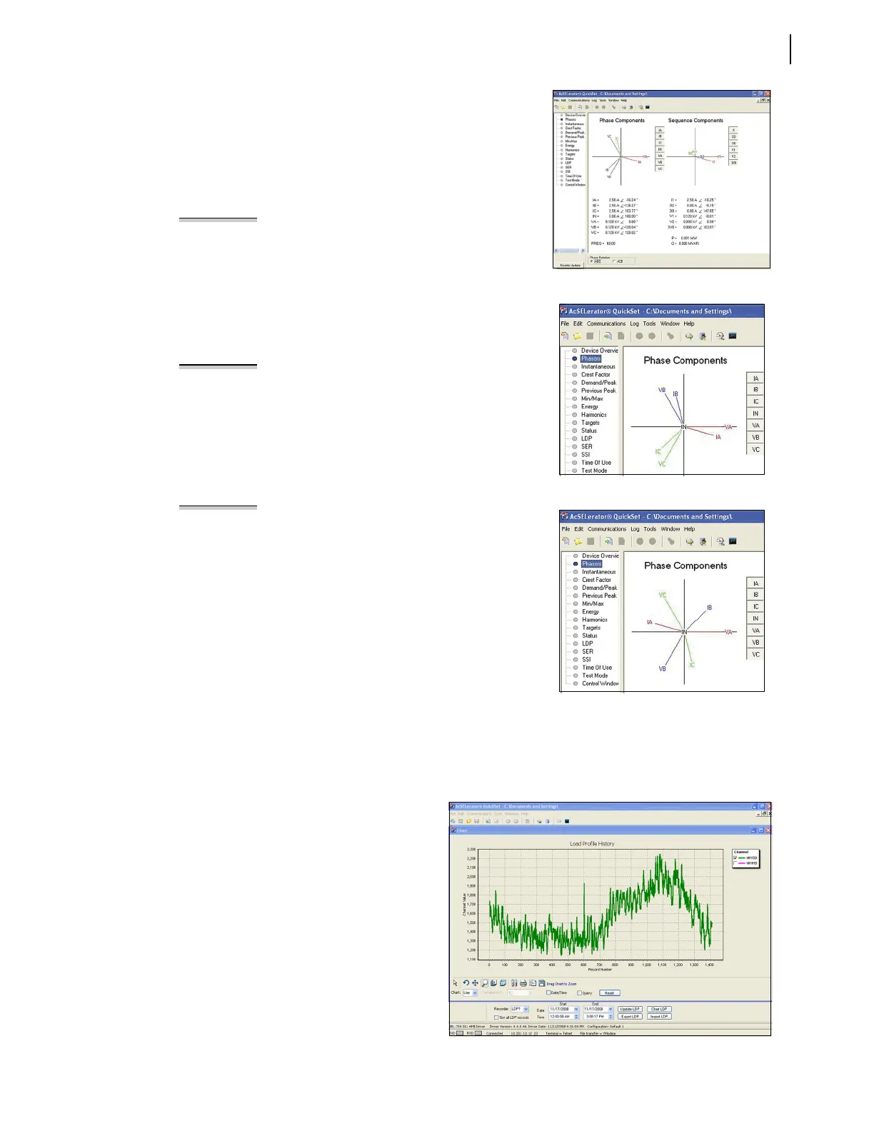The ACSELERATOR QuickSet HMI displays Load Profile and Voltage Sag/Swell/Interruption (VSSI) reports.