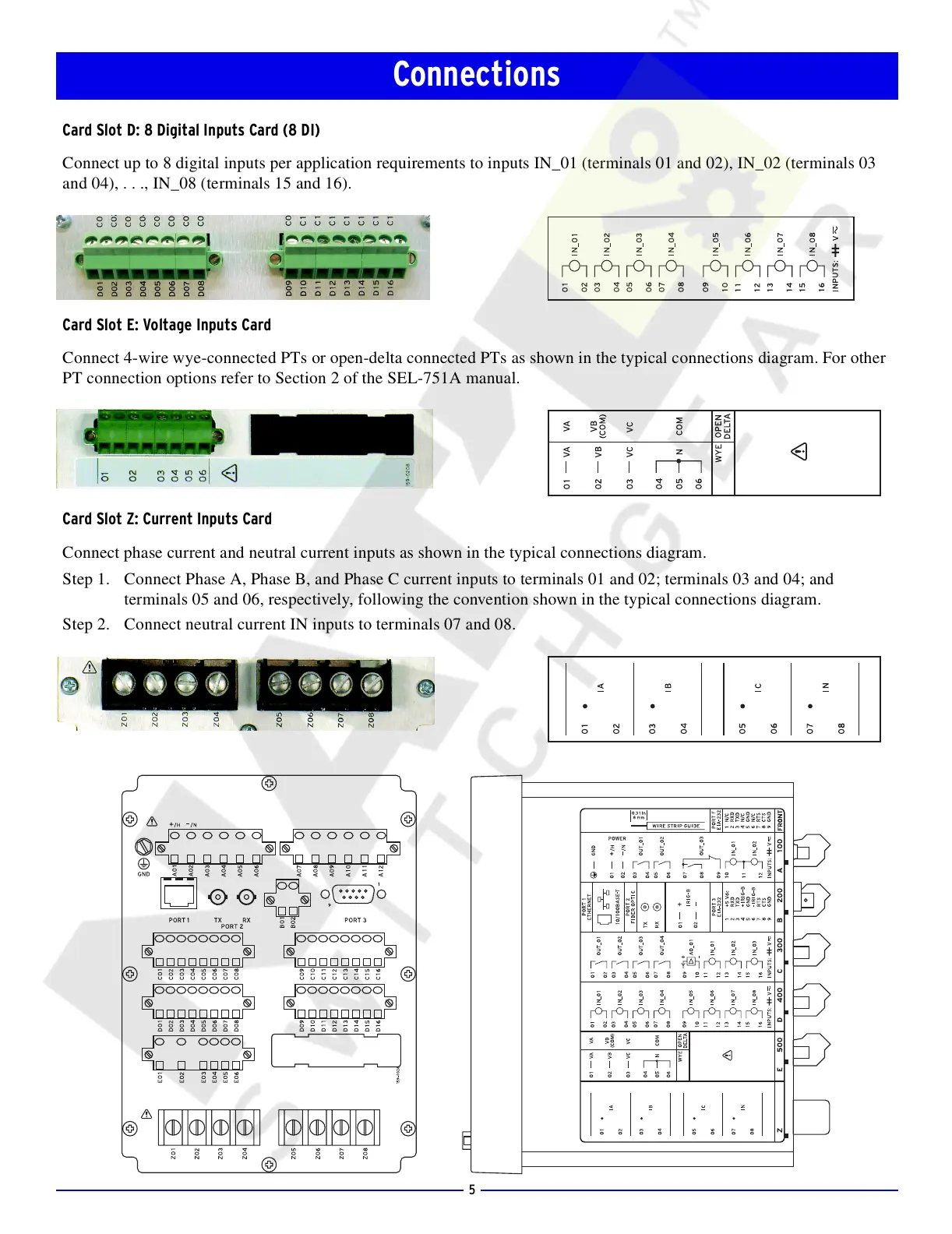 PT connection options refer to Section 2 of the SEL-751A manual.
