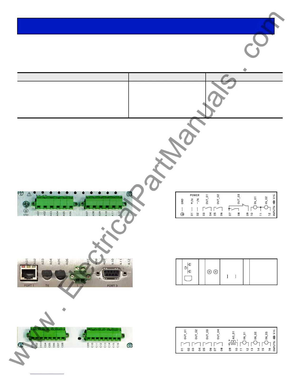 Step 4. Connect the 3 output contacts, per application requirements, to OUT101 (terminals 03, 04), OUT102 (terminals 05,