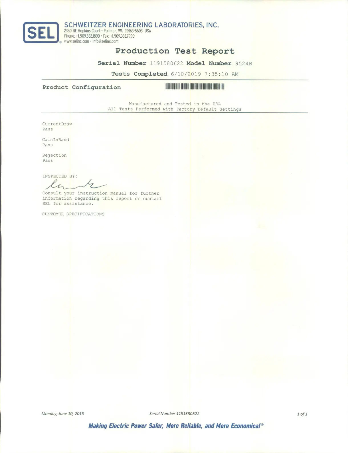 Production Test Report