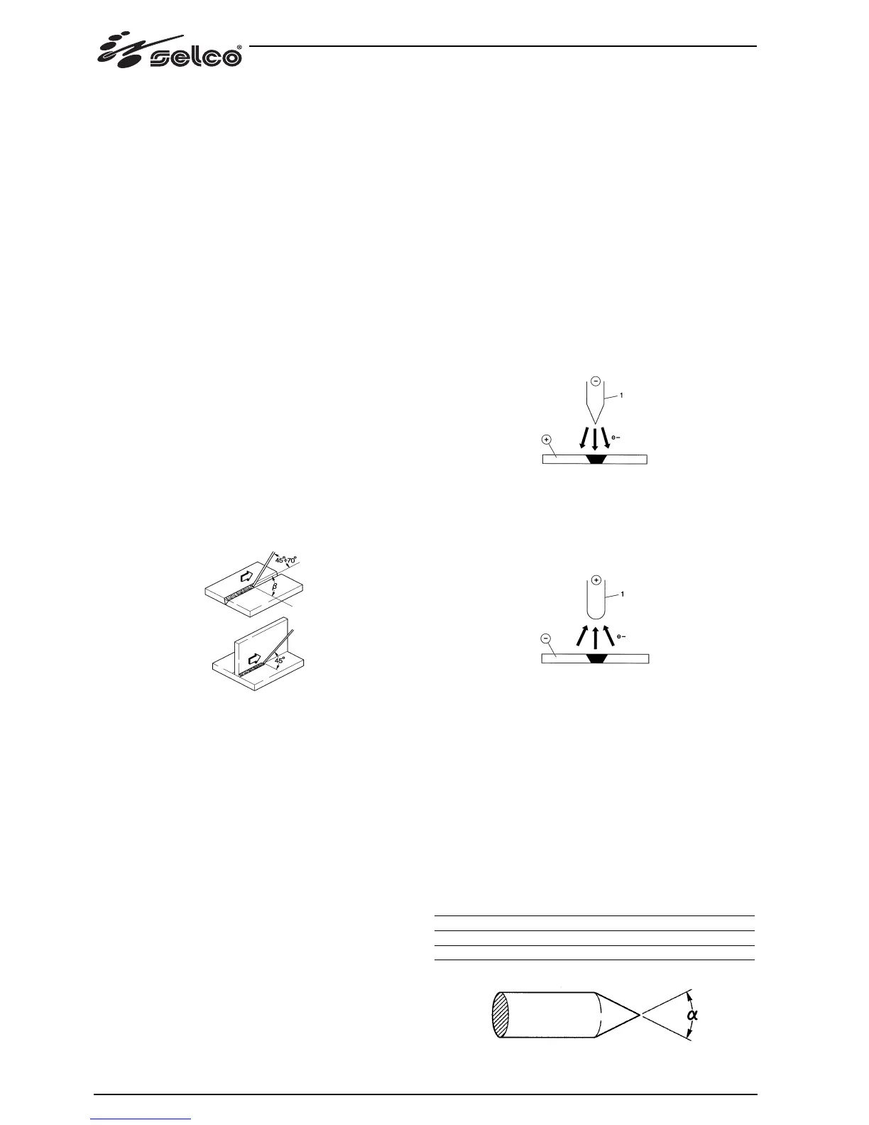 Elektrodens hældningsvinkel varierer afhængigt af antallet af