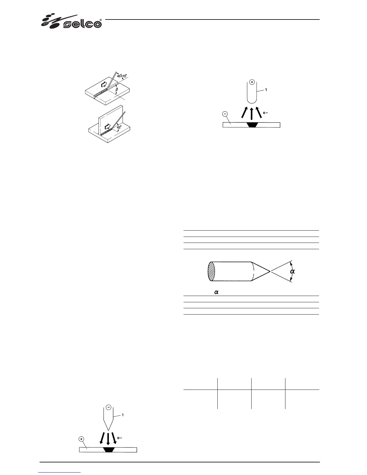 L'angolo di inclinazione dell'elettrodo varia a seconda del numero