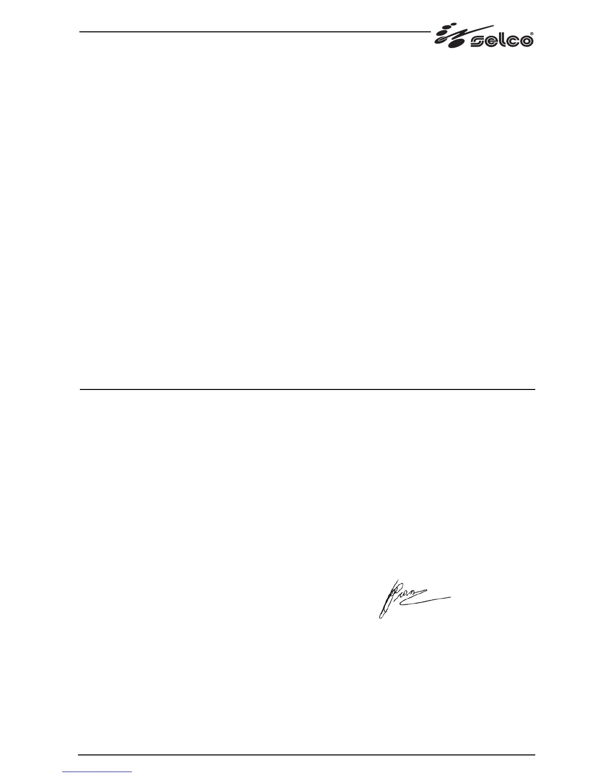 Ogni intervento o modifica non autorizzati dalla SELCO s.r.l. faranno decadere la validità di questa dichiarazione.