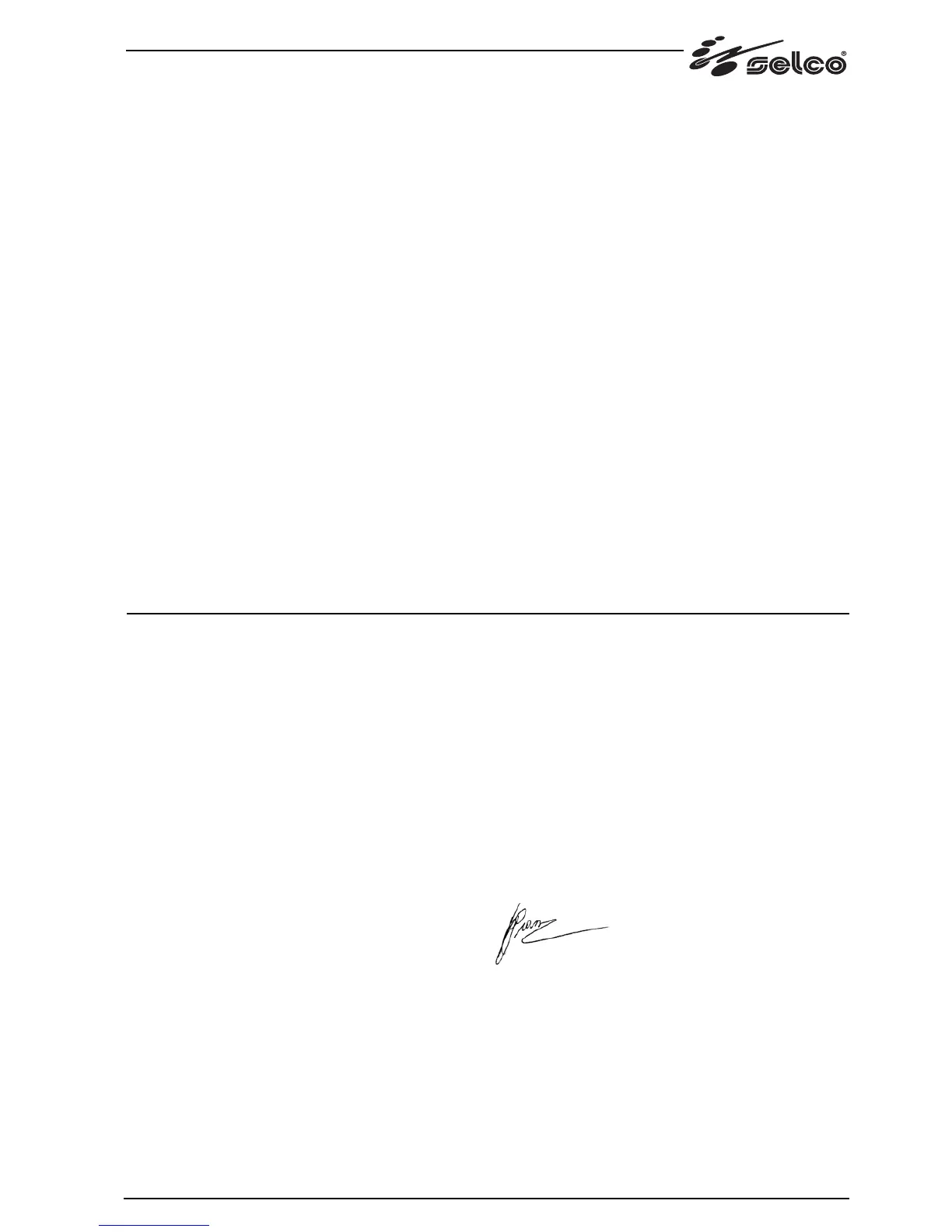 Qualquer operação ou modificação não autorizada, previamente, pela SELCO s.r.l. anulará a validade desta declaração.