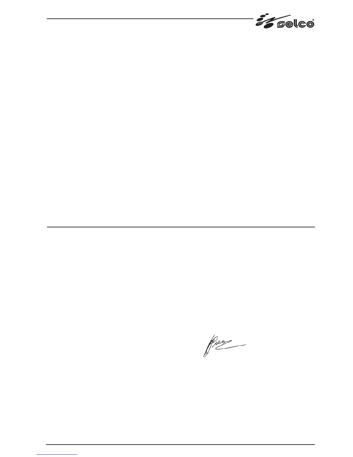 Iedere ingreep of modificatie die niet vooraf door SELCO s.r.l. is goedgekeurd maakt dit certificaat ongeldig.
