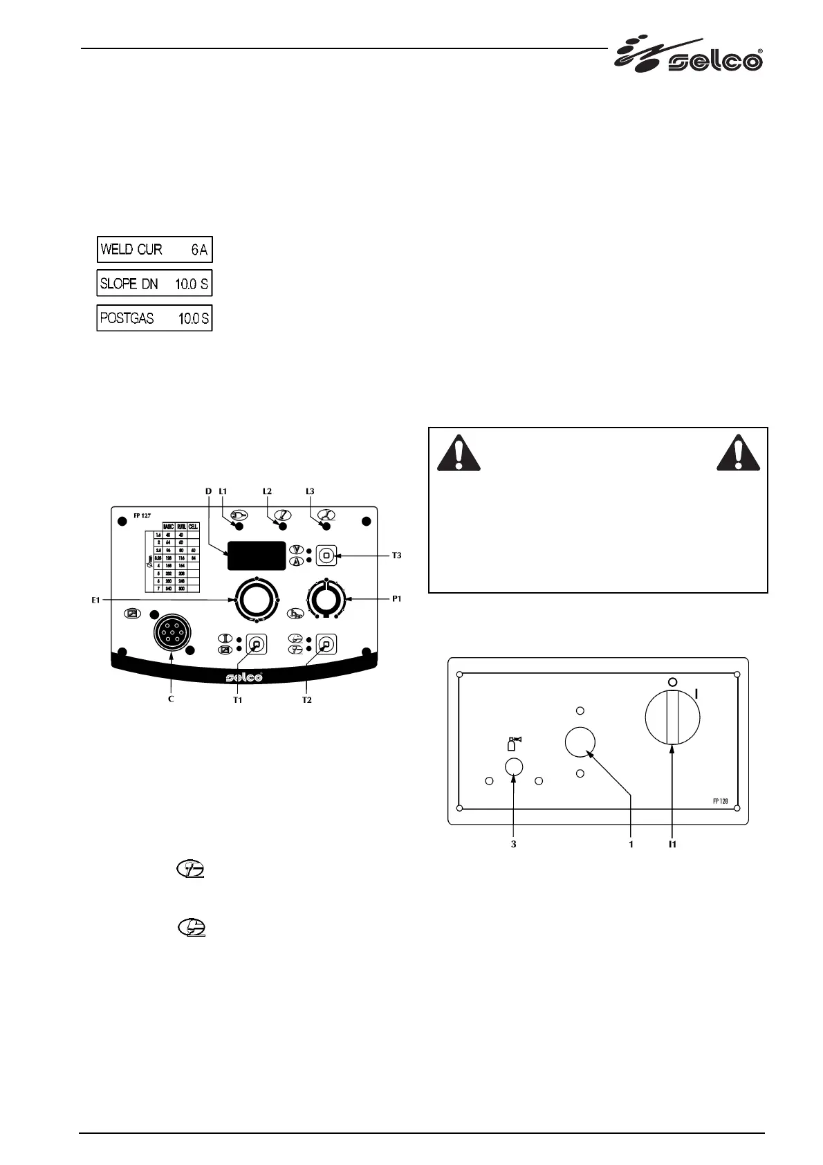 Die SET-Taste drücken, um der Reihe nach die Schweißpa-