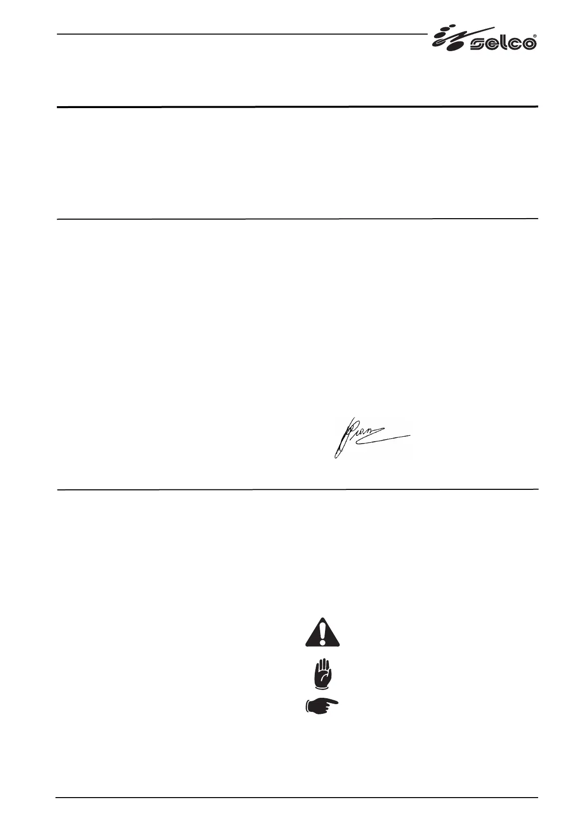 Toda reparación, o modificación, no autorizada por SELCO s.r.l. hará decaer la validez de esta declaración.