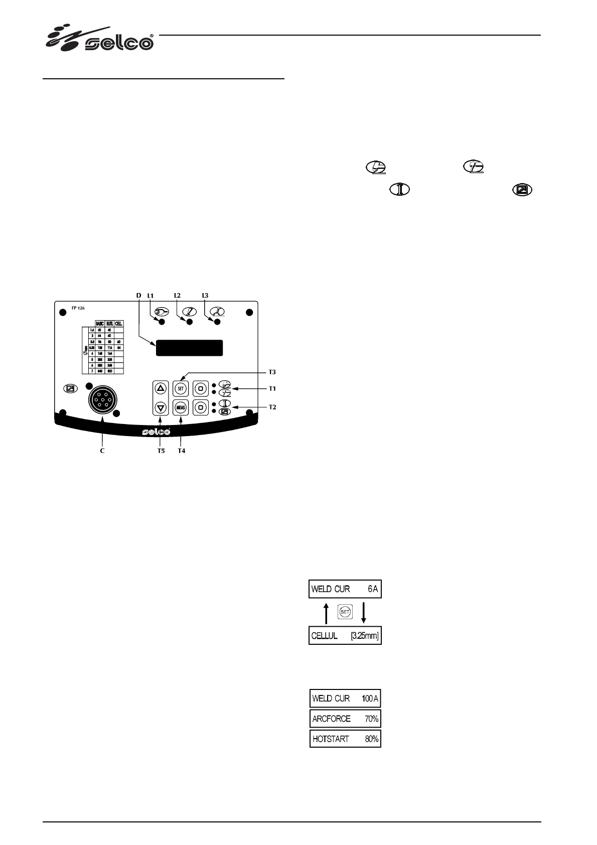 * T2: Tecla selecciona el control de la corriente de soldadura .