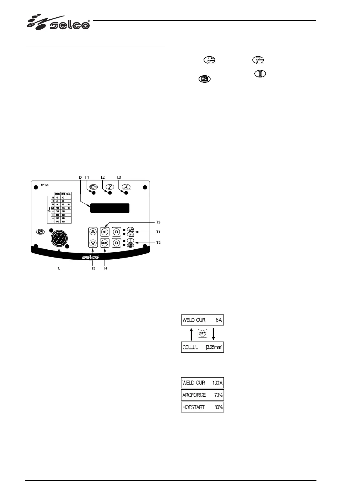 - de toets T2 in te drukken om de lasstroom in te stellen