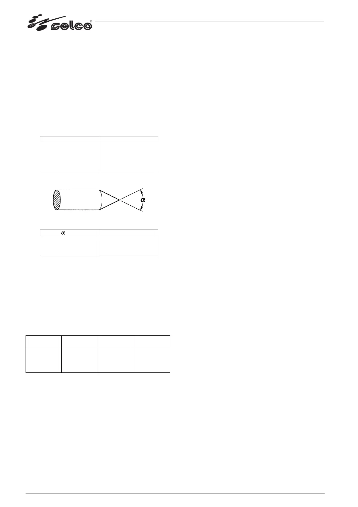 De elektrode moet gepunt worden zoals aangeven is in schema.