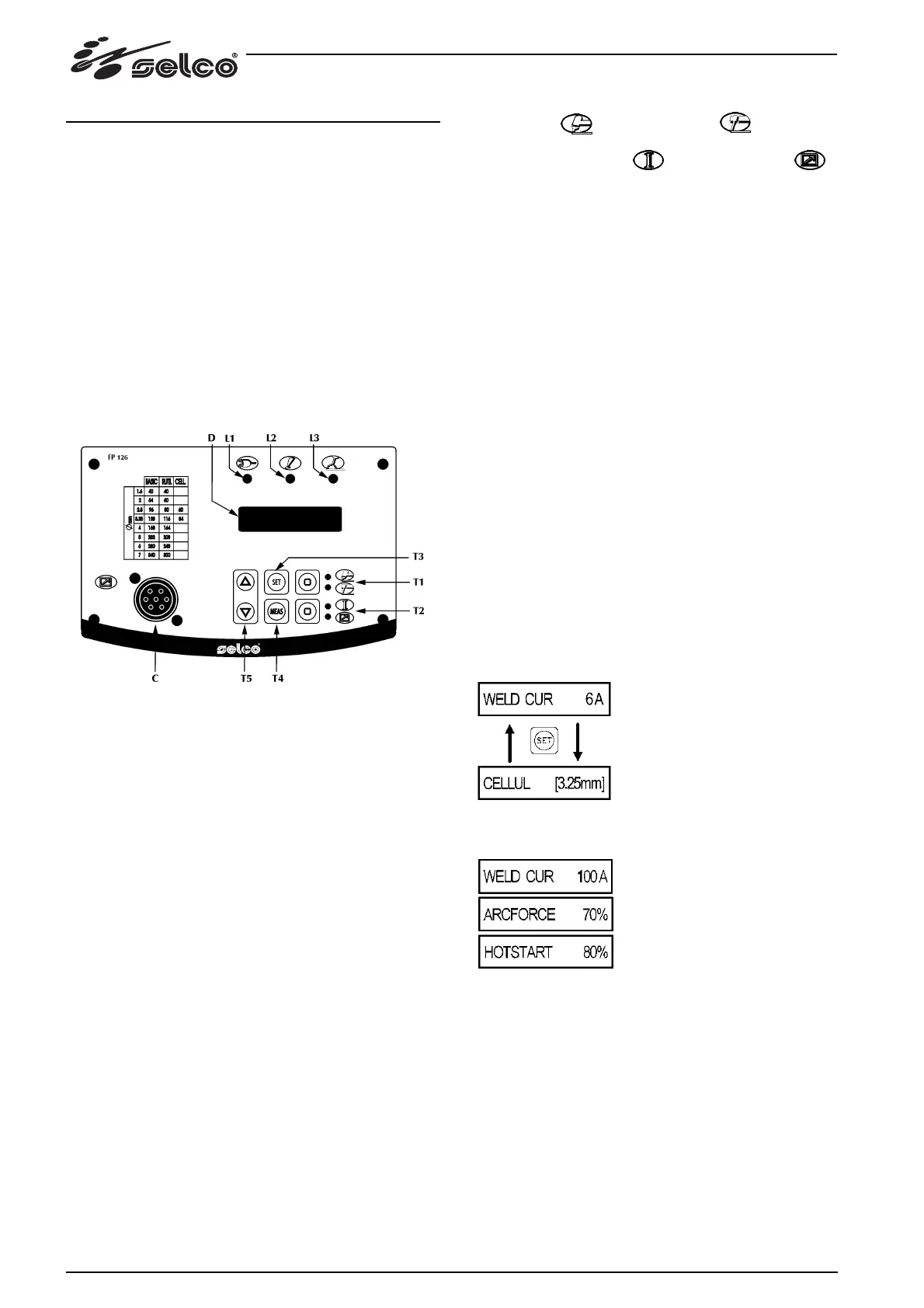 - trycka på knappen T2 för att ställa in svetsströmmen från