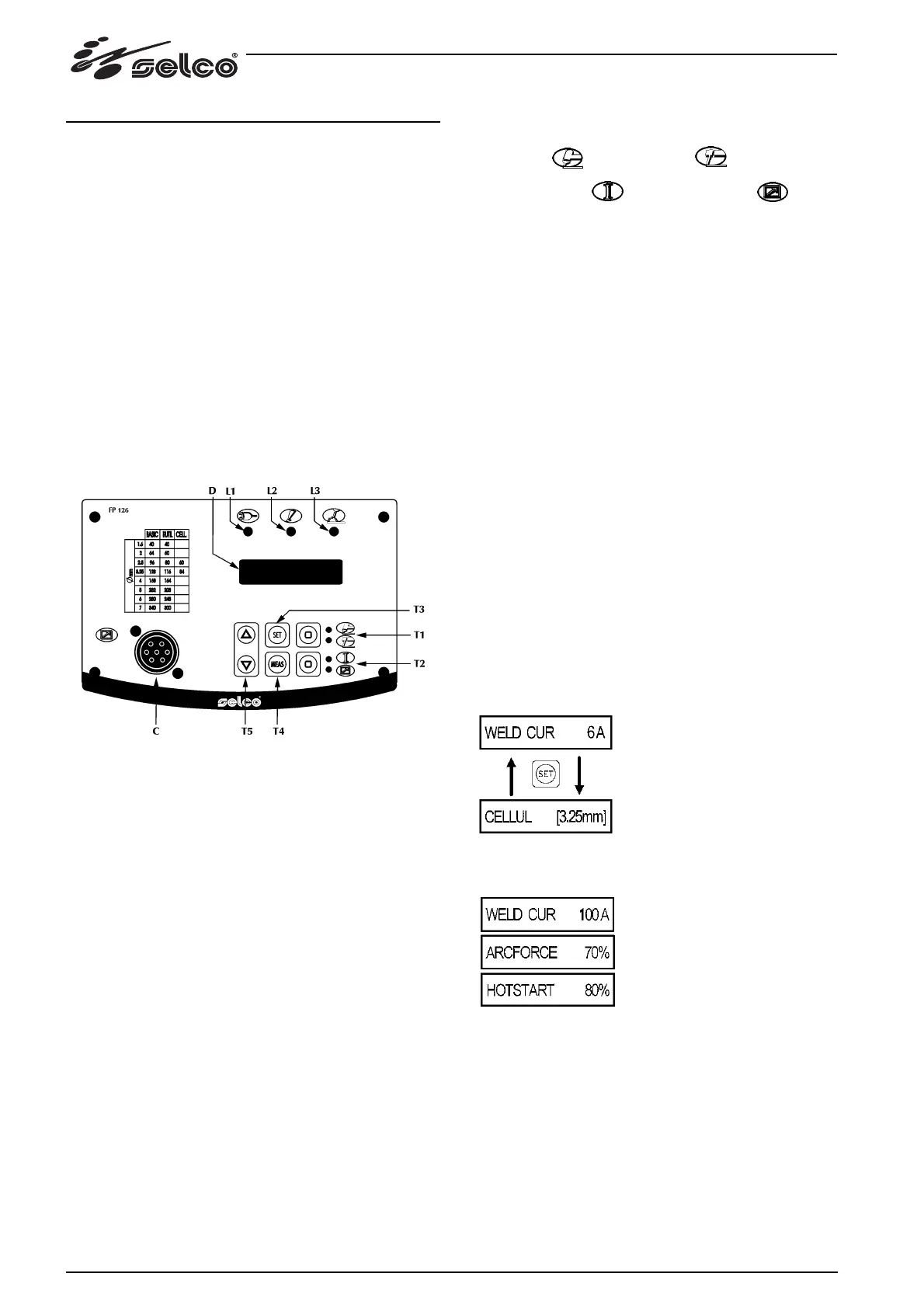 * T3: Trykknap for valg eller endring av sveiseparametrene.