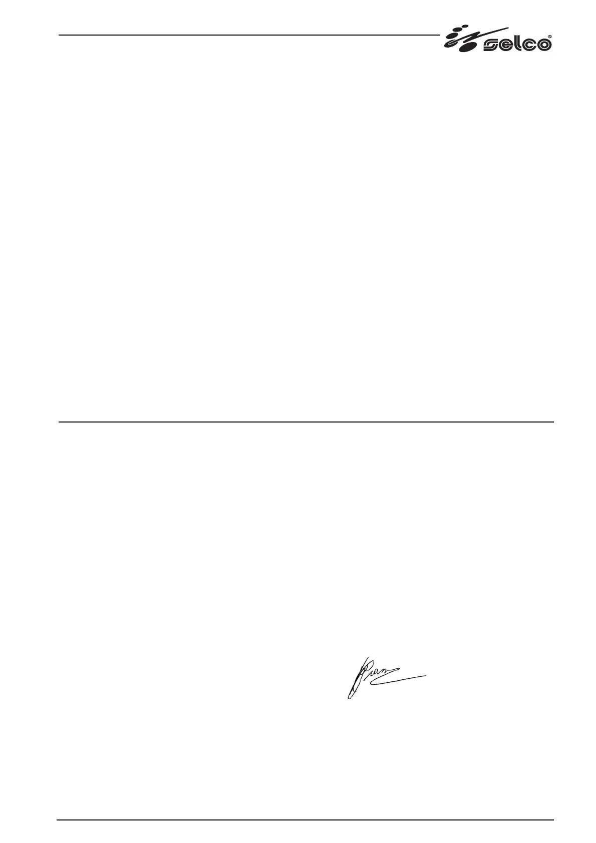Toute intervention ou modification non autorisée par SELCO s.r.l. annulera la validité de cette déclaration.