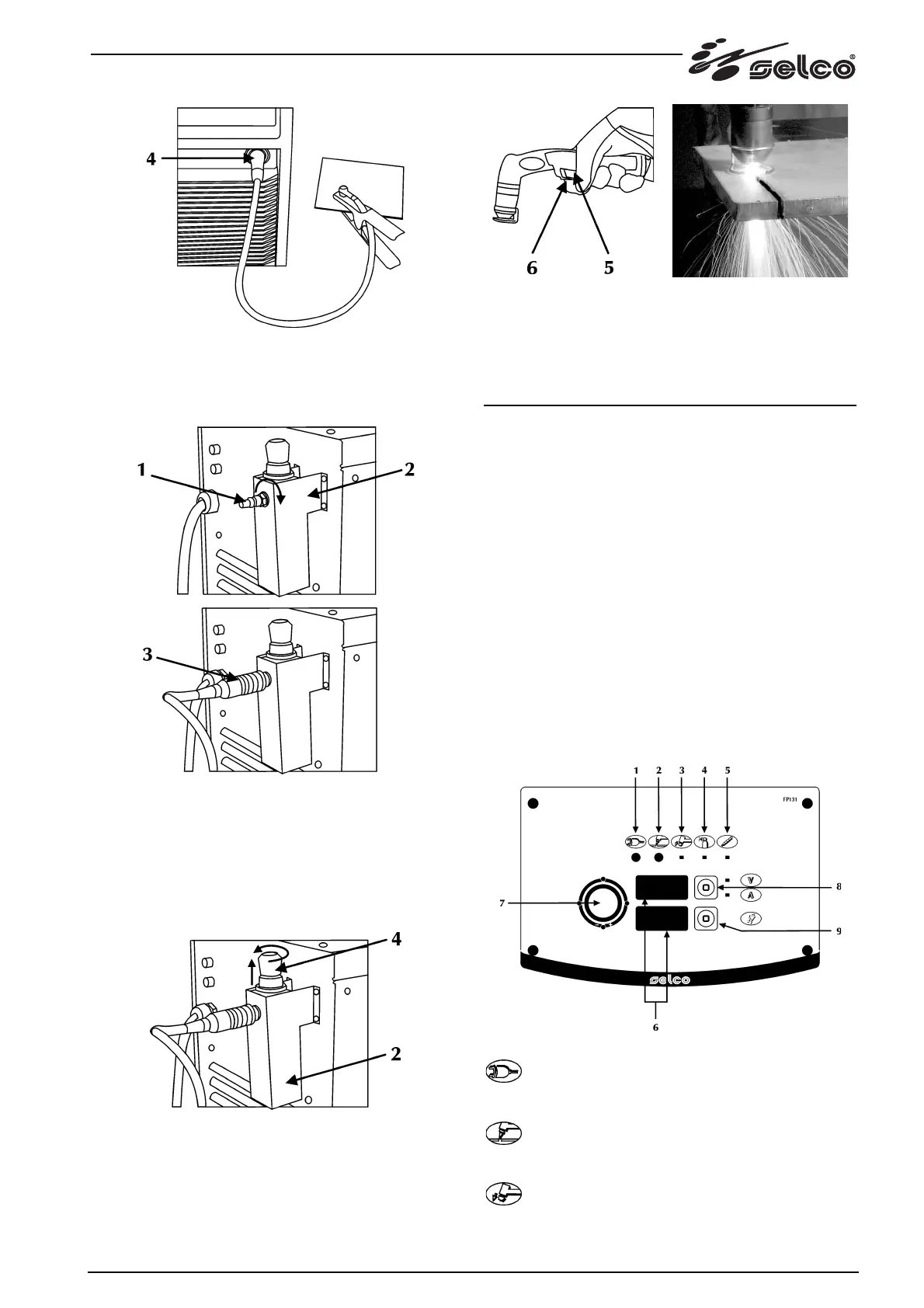 - Premere il pulsante torcia (6) e innescare l'arco.