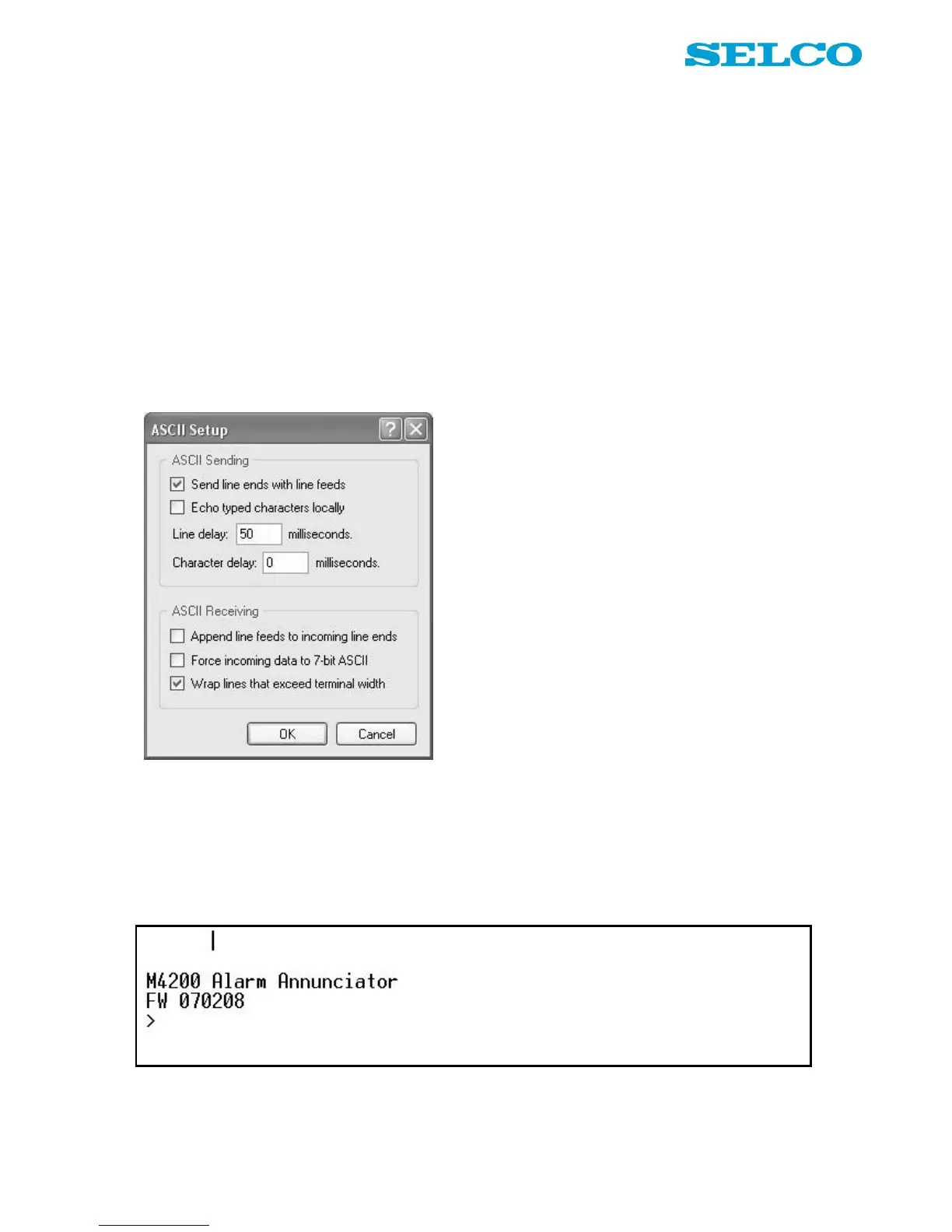 When the ASCII Setup dialogue appears on the screen: