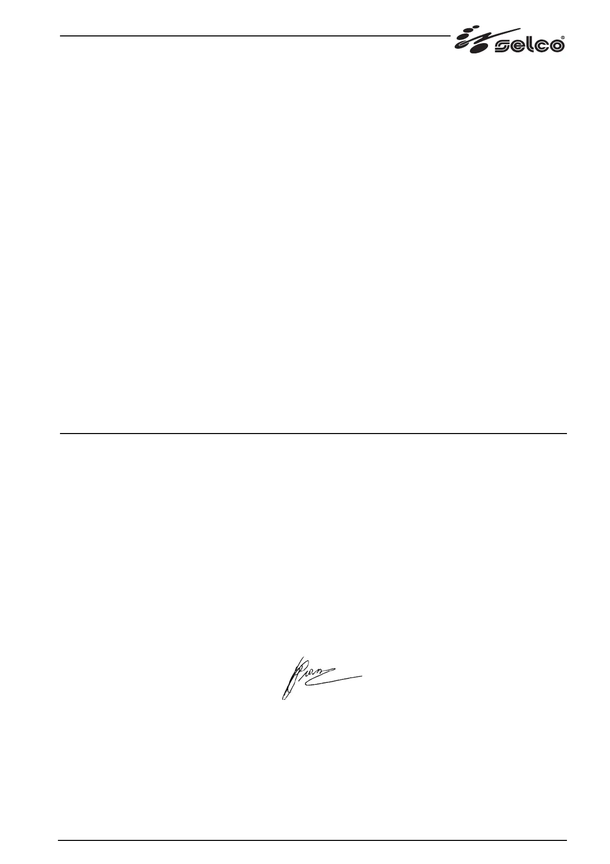 Ogni intervento o modifica non autorizzati dalla SELCO s.r.l. faranno decadere la validità di questa dichiarazione.