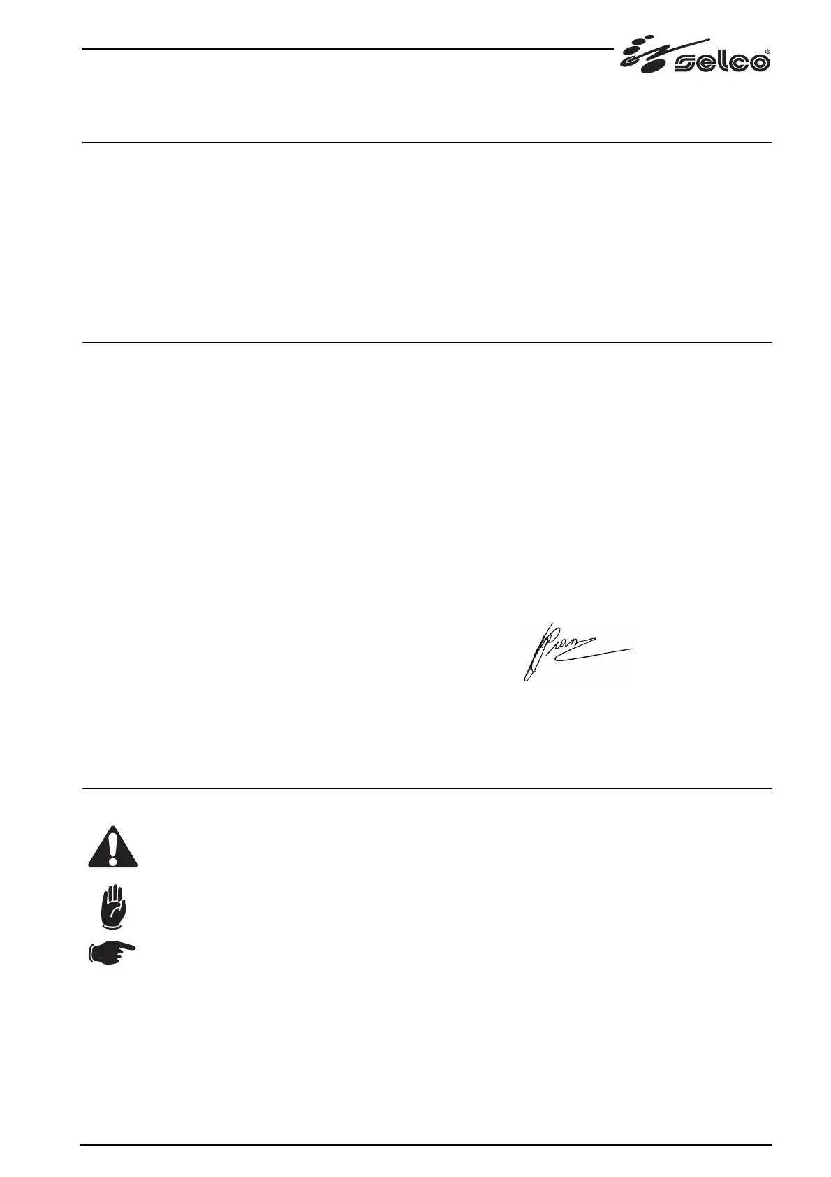 Ogni intervento o modifica non autorizzati dalla SELCO s.r.l. faranno decadere la validità di questa dichiarazione.