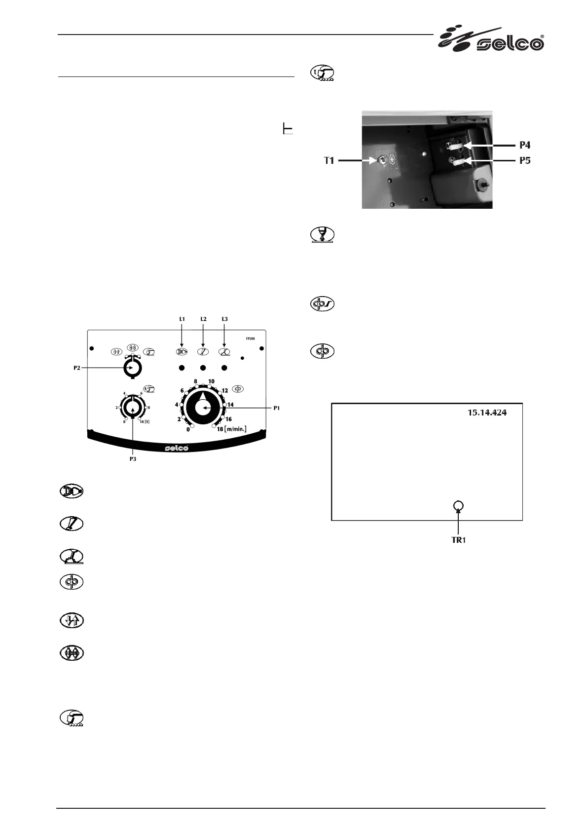 P1: potenziometro di regolazione velocità filo.