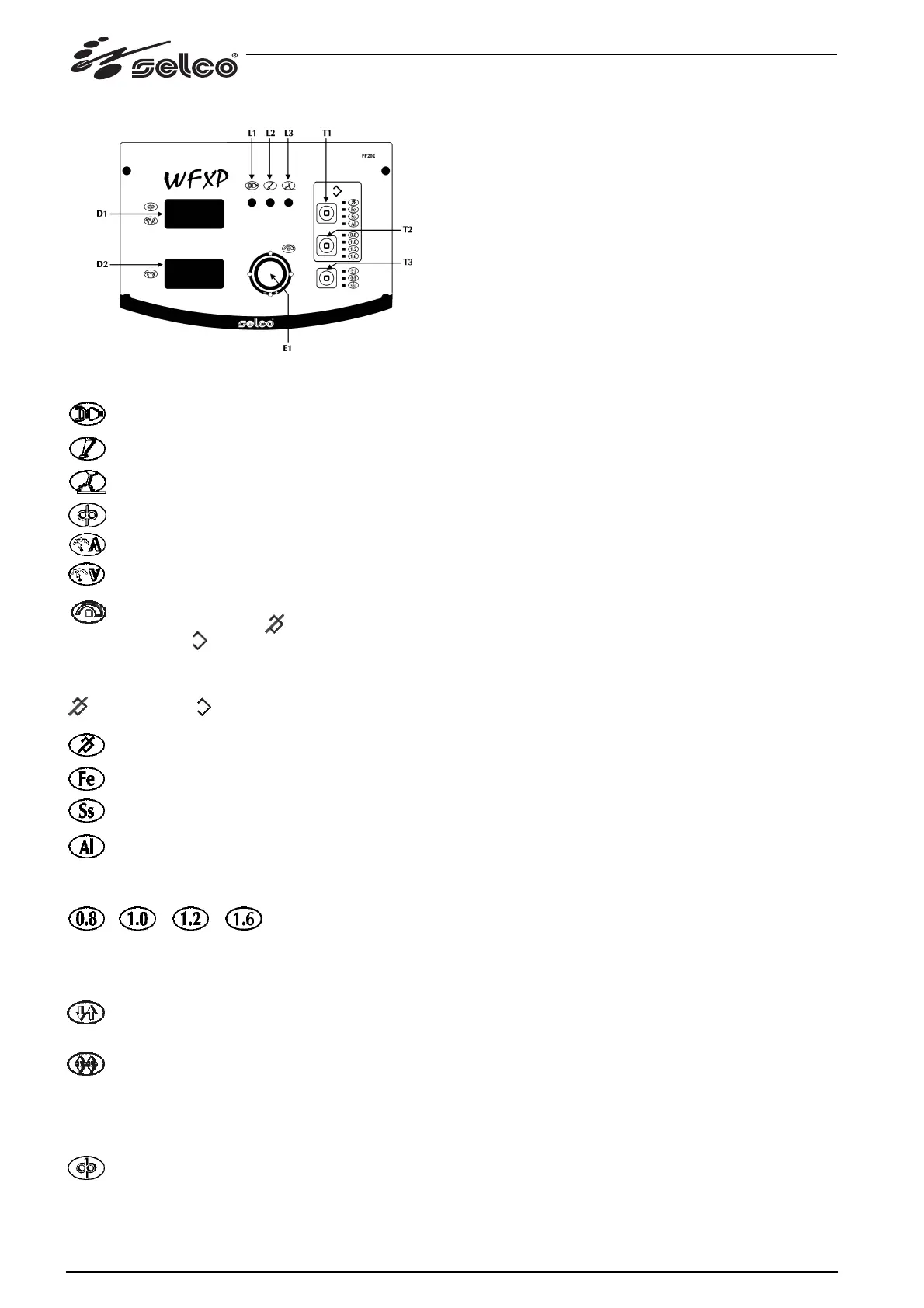 T2, diametro filo: in sinergia, permette la selezione del diame-