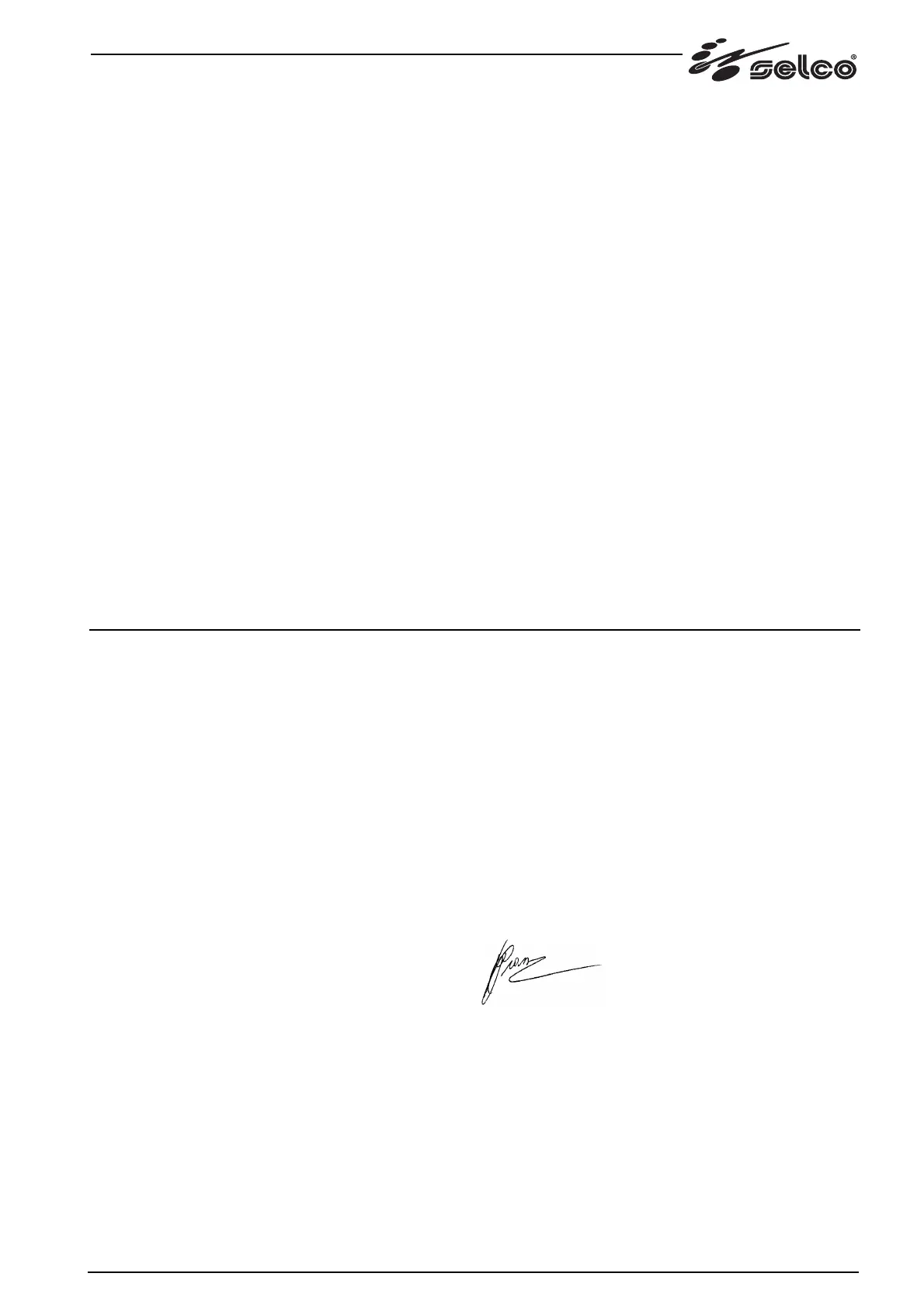 Ingrepp eller modifieringar utan tillstånd av SELCO s.r.l. medför att denna försäkran inte längre är giltig.