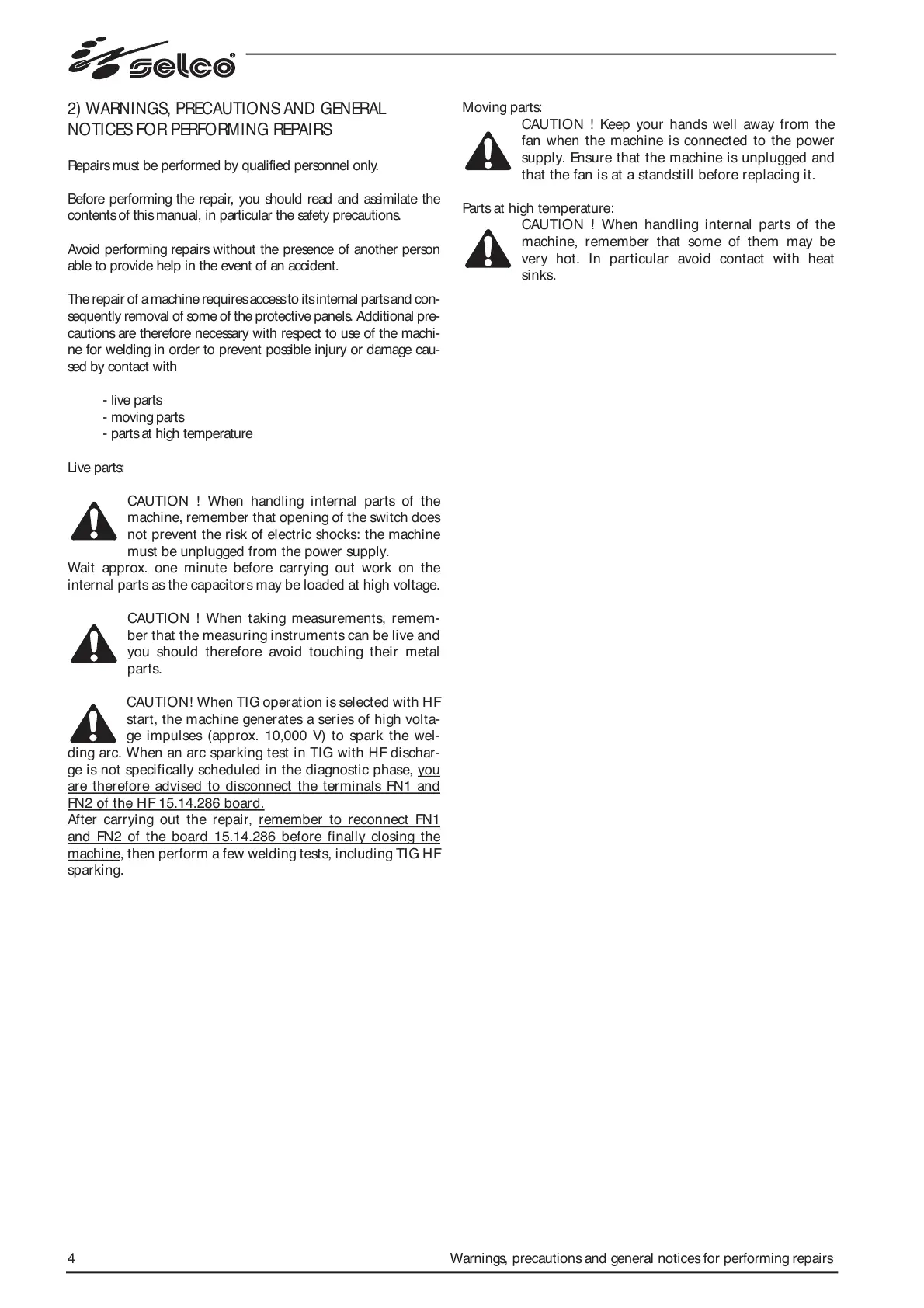 4 Warnings, precautions and general notices for performing repairs