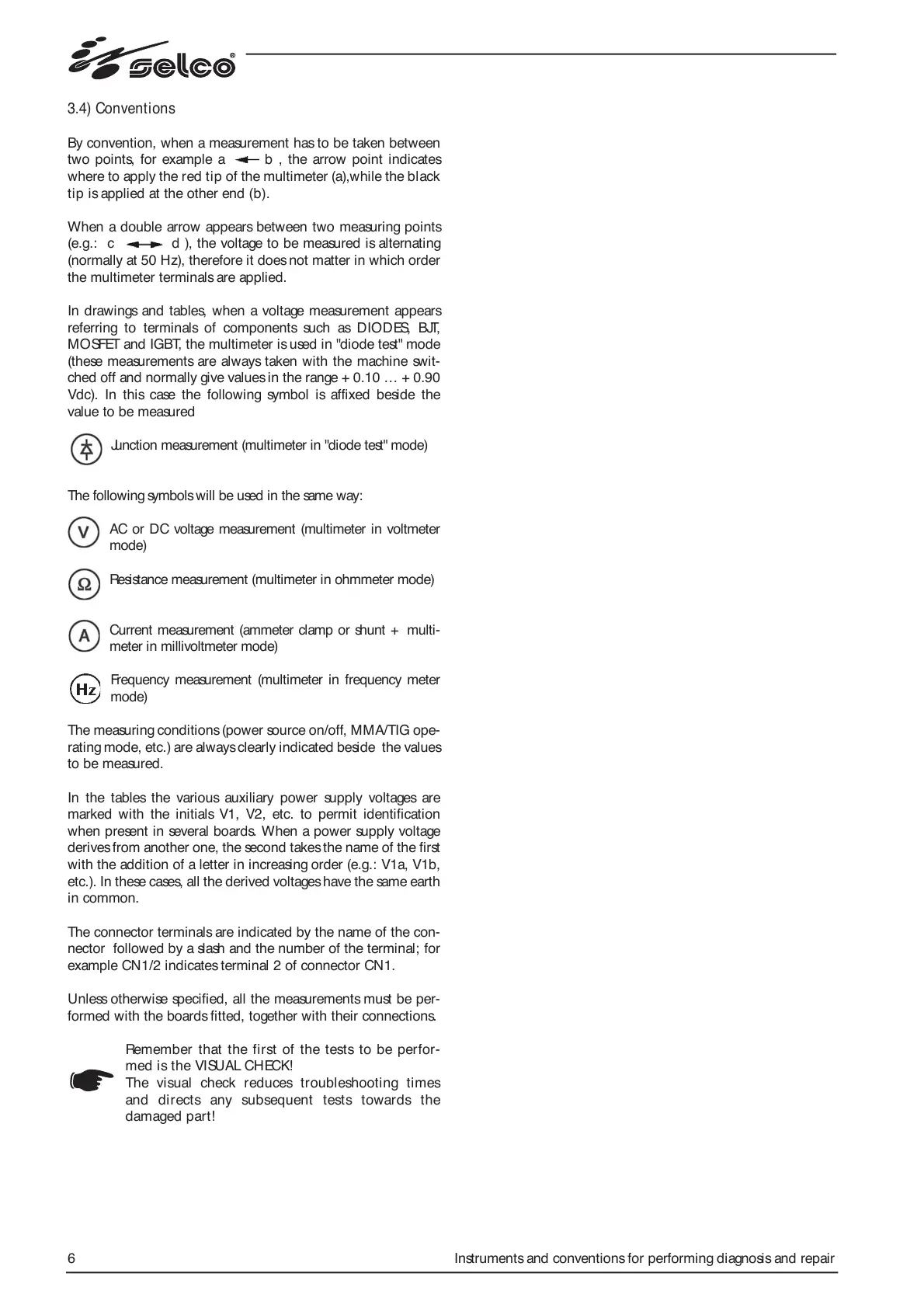 The measuring conditions (power source on/off, MMA/TIG ope-