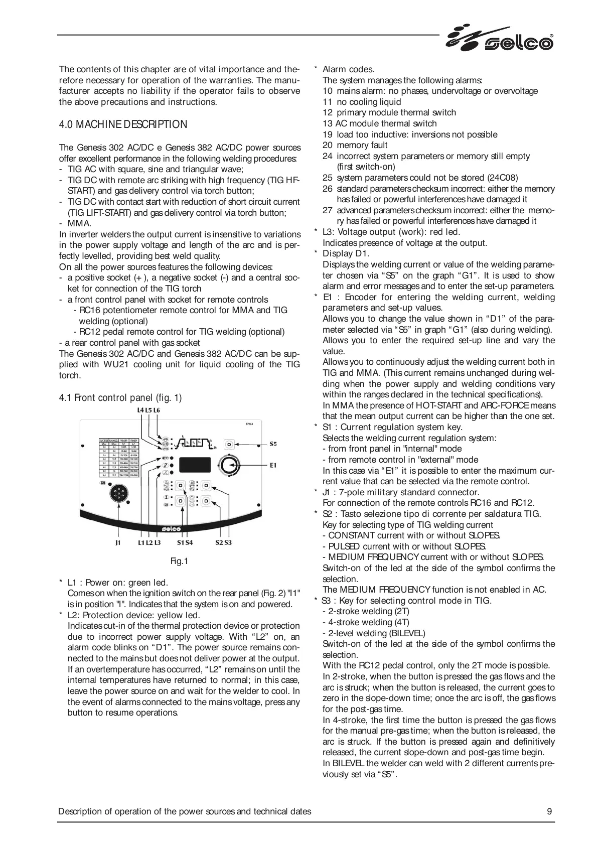 4.1 Front control panel (fig. 1)