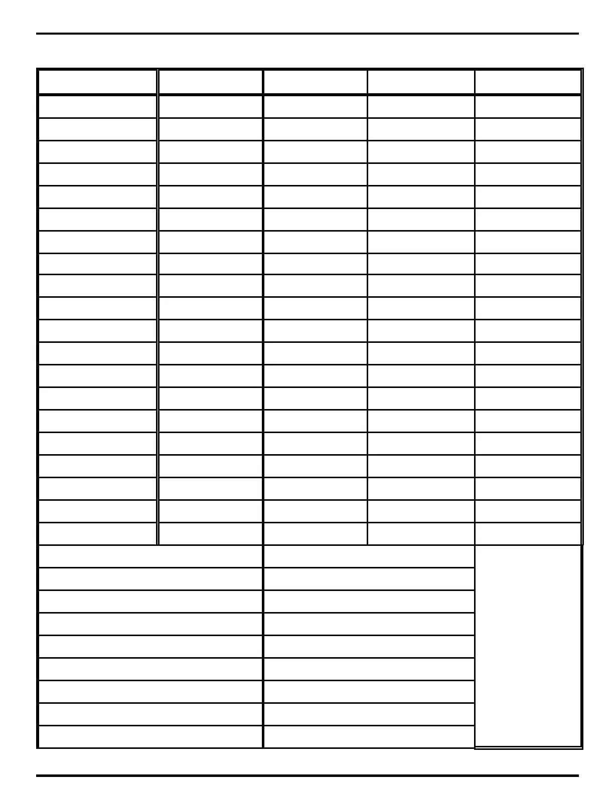 APPENDIX A CUSTOMER SETUP CHART