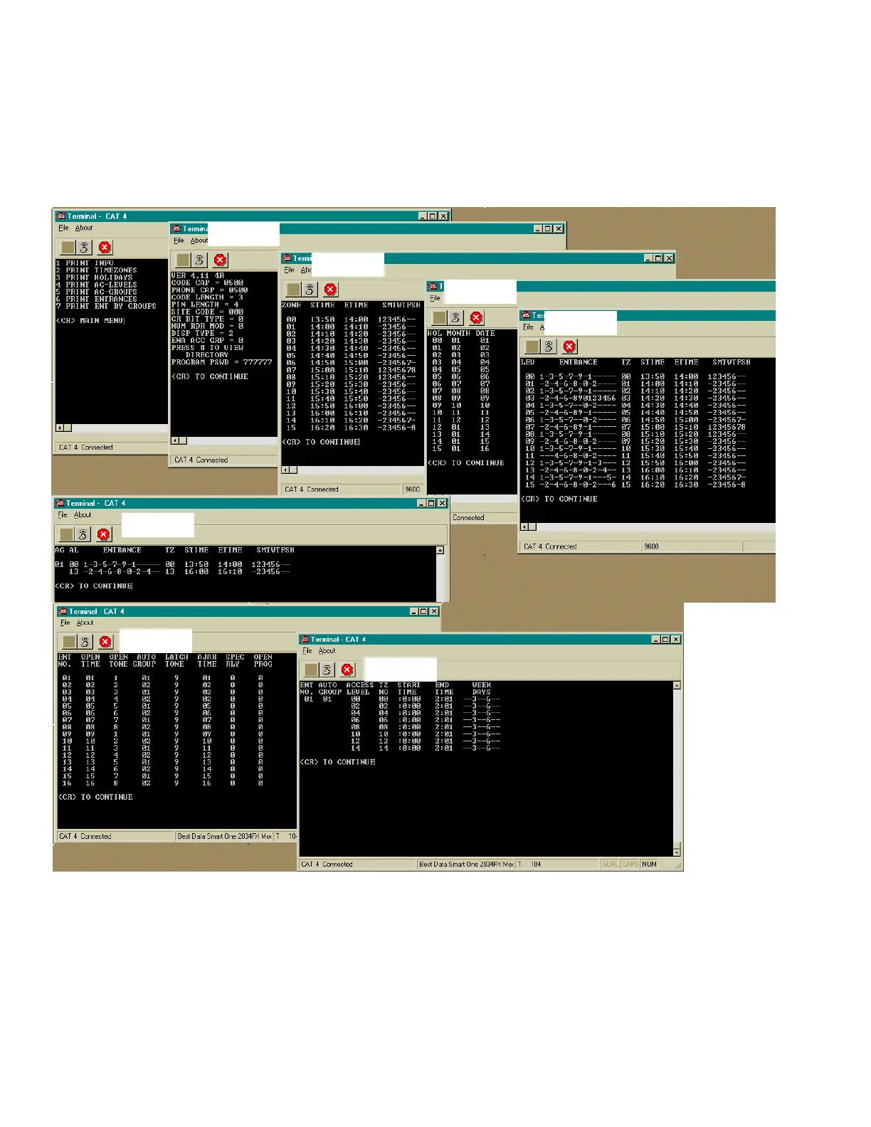 Access Levels, Access Groups and general Information. Sub-menu choices 6 through 9 send data to