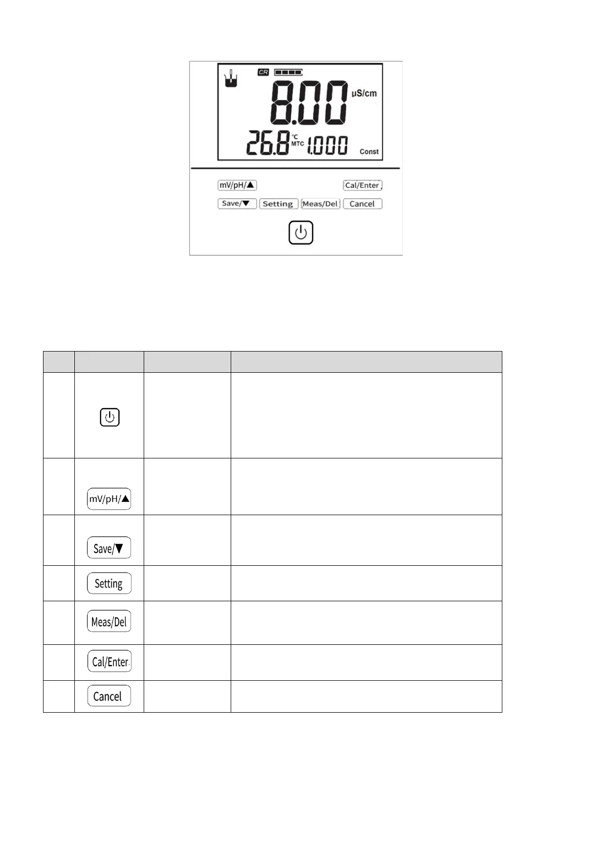 Themeteradoptstactpowerbutton,theinstrumenthas7keysintotal,thespecificfunctionsareasfollows: