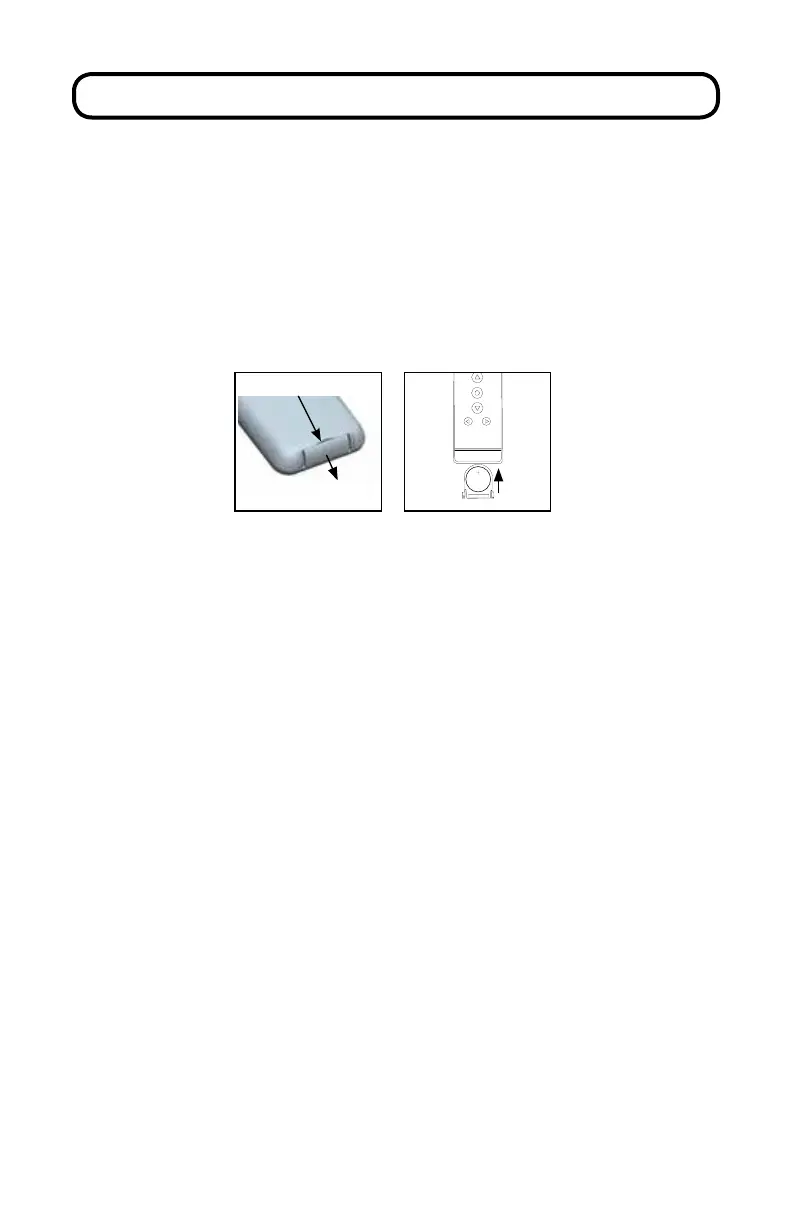 indentation on the back of the remote. To avoid the battery falling out of the