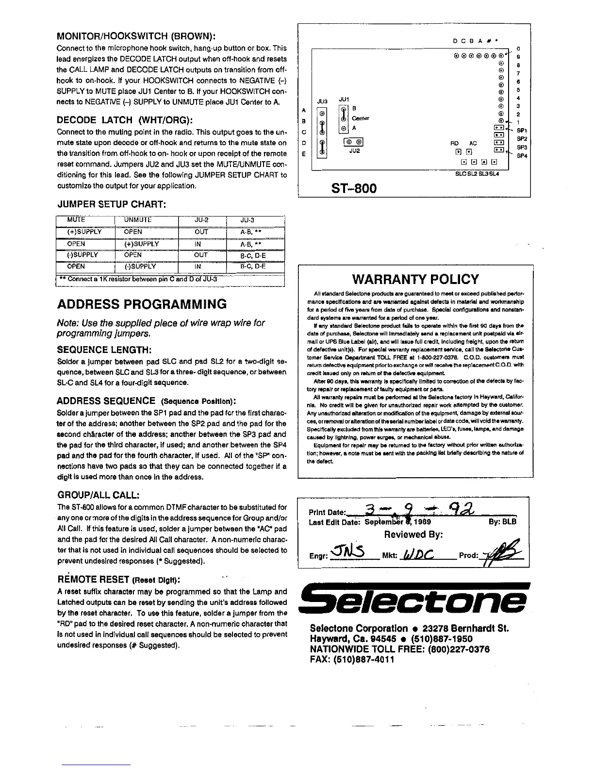 Selectone ST-800 - Page 2