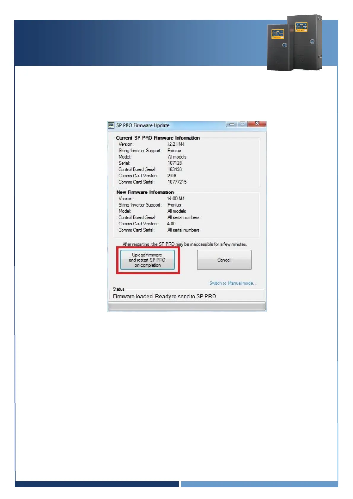 Note: If firmware is already up to date then the “Update firmware and restart SP PRO