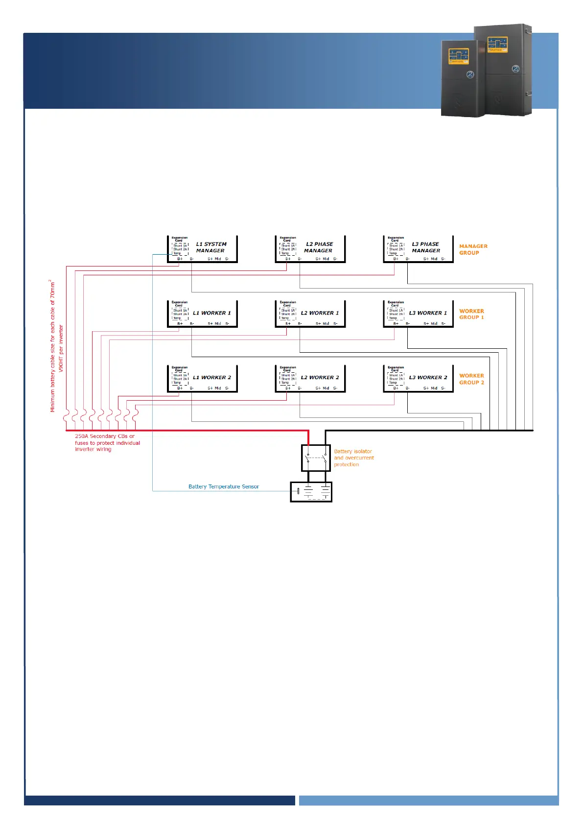 be split into one circuit per SP PRO, each supplied by minimum 70mm