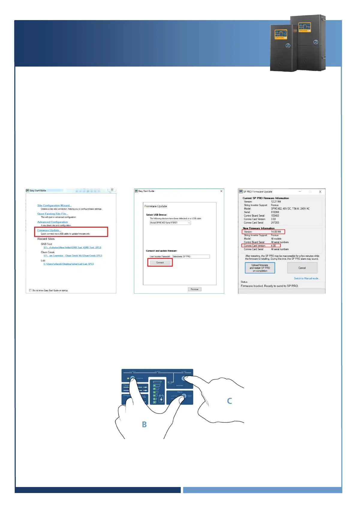 Select Firmware Update from the Easy Start Guide and update all of the SP PROs in the Powerchain