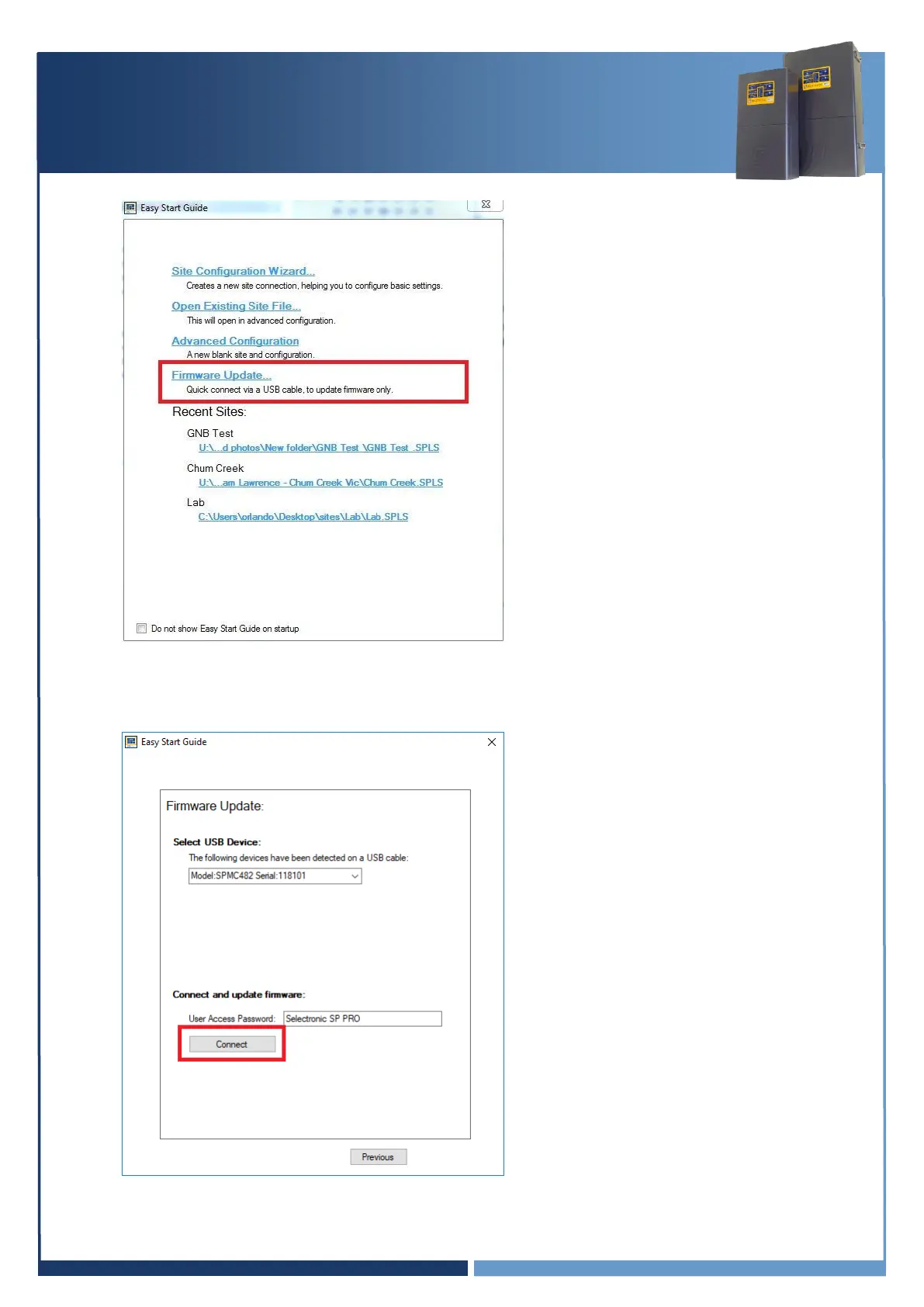 5. The Easy Start Guide will automatically detect when the SP PRO is ON and USB cable is plugged
