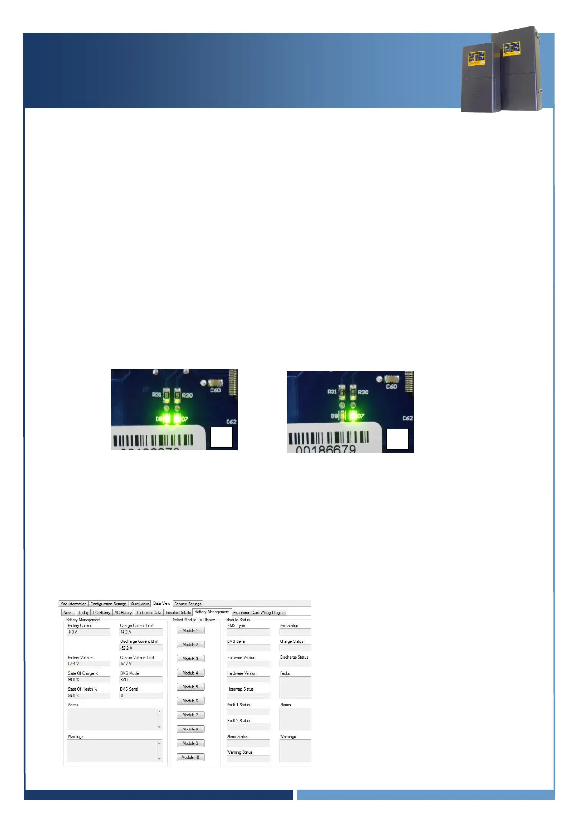 4. The Module Status readings are greyed out as they are not used with the batteries.