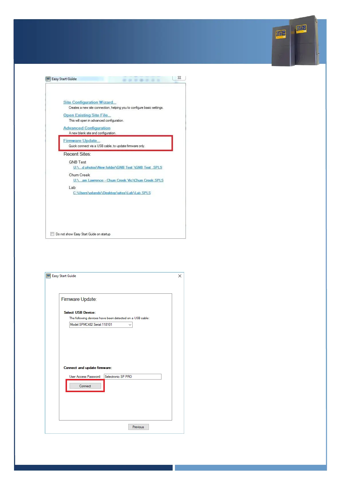 7. The Easy Start Guide will automatically detect when the SP PRO is ON and USB cable is plugged