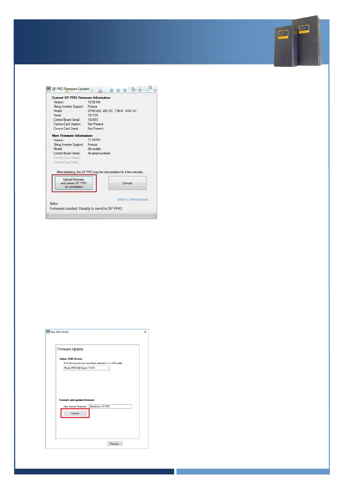 8. In the SP PRO Firmware Update screen, click on the Upload firmware and restart SP PRO