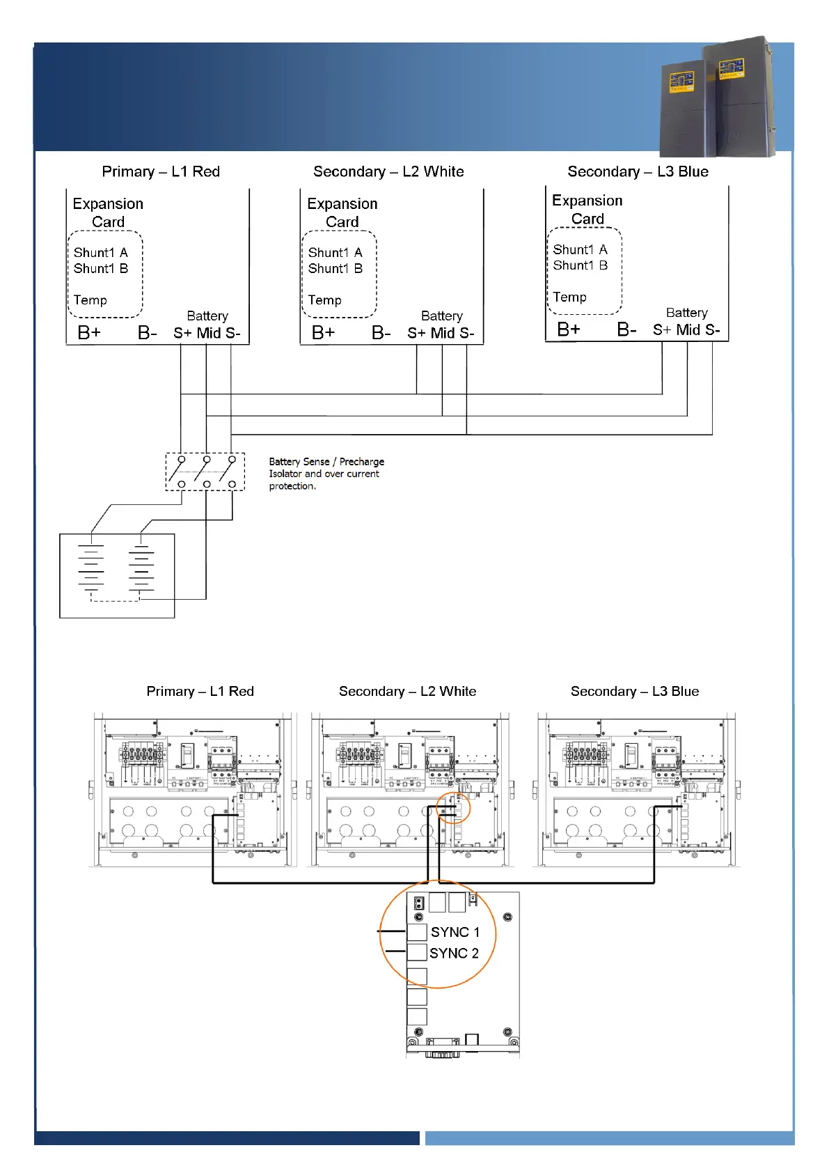 SP PRO Three Phase DC pre-charge and midpoint wiring layout