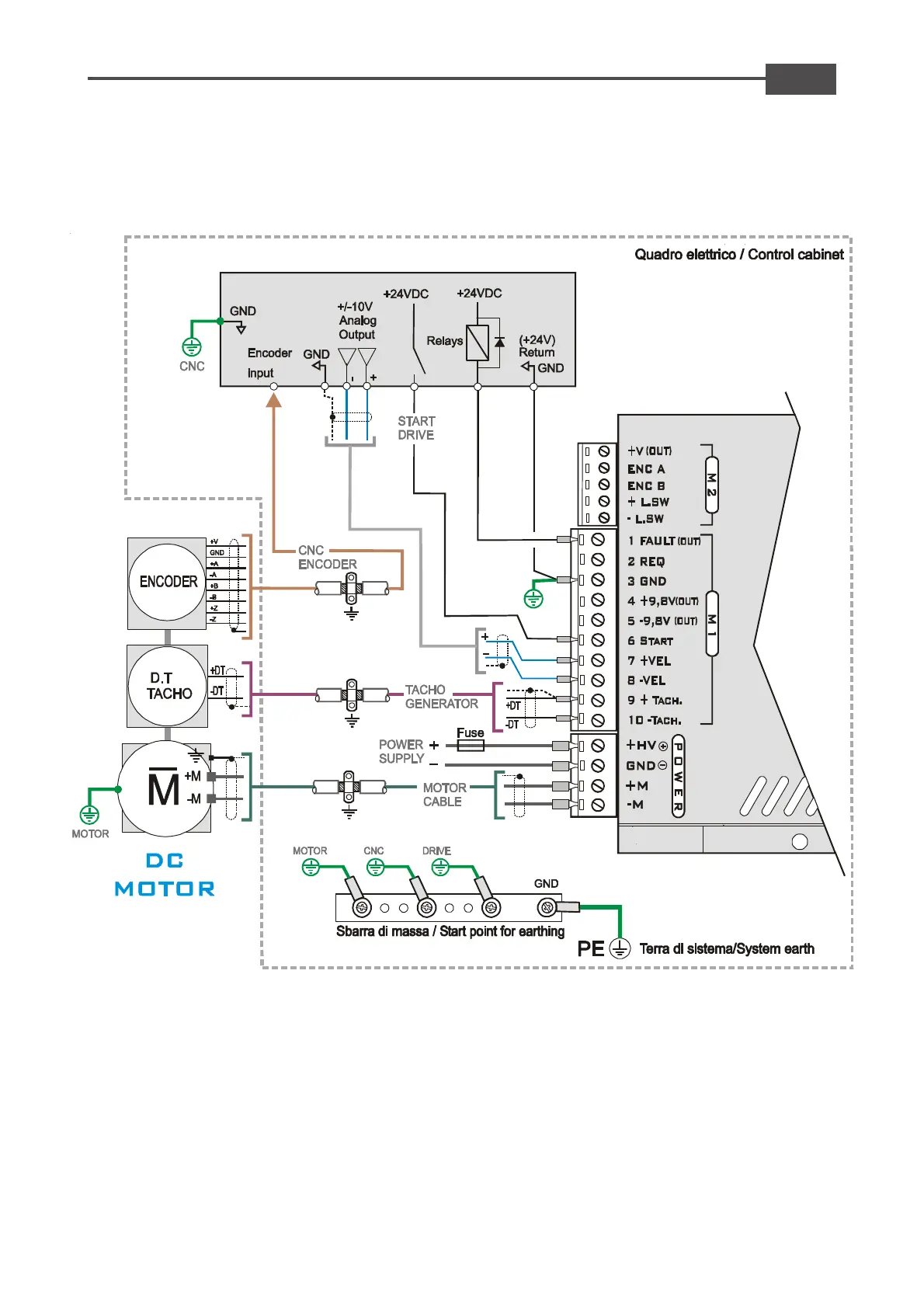 The following diagram shows an tipical application utilizing a Dc One with Brush motor. The