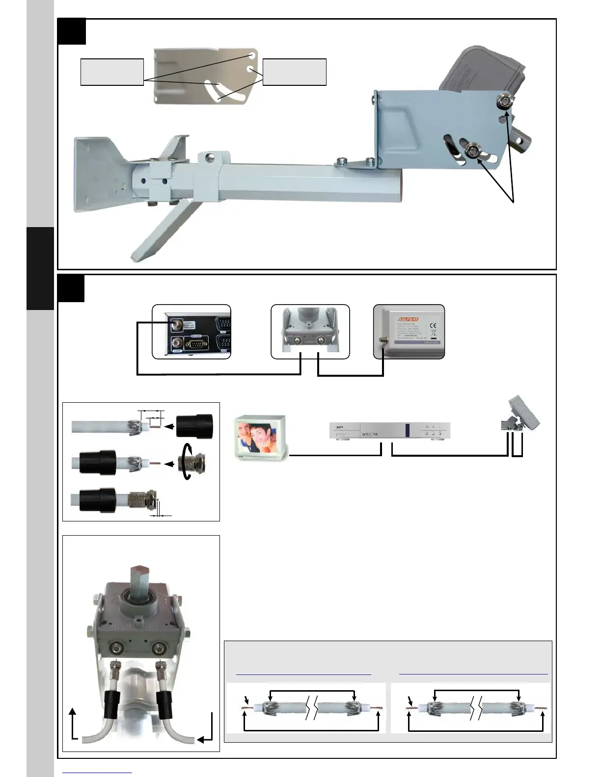 - Montare alle estremità del cavo di discesa i connettori F e collegare