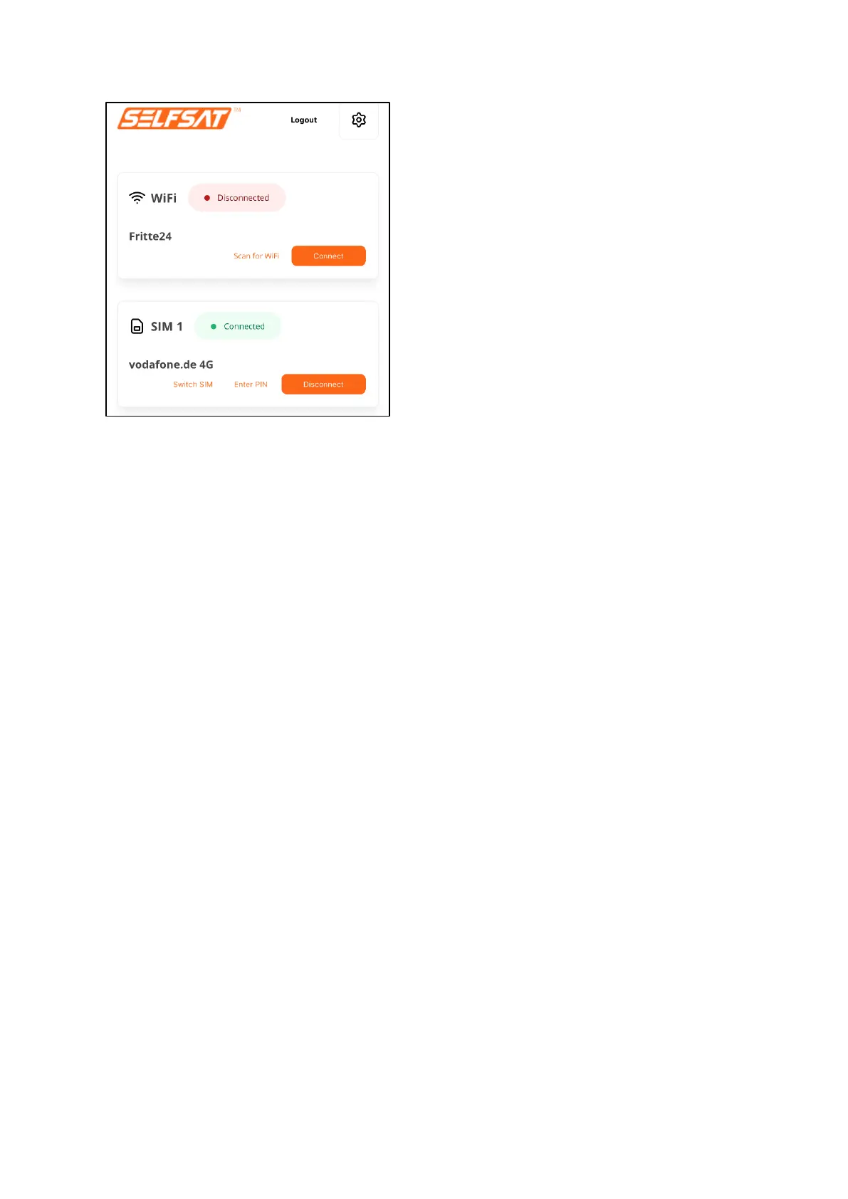 "Disconnected" (orange) in the "WiFi" field and in the "SIM" field.