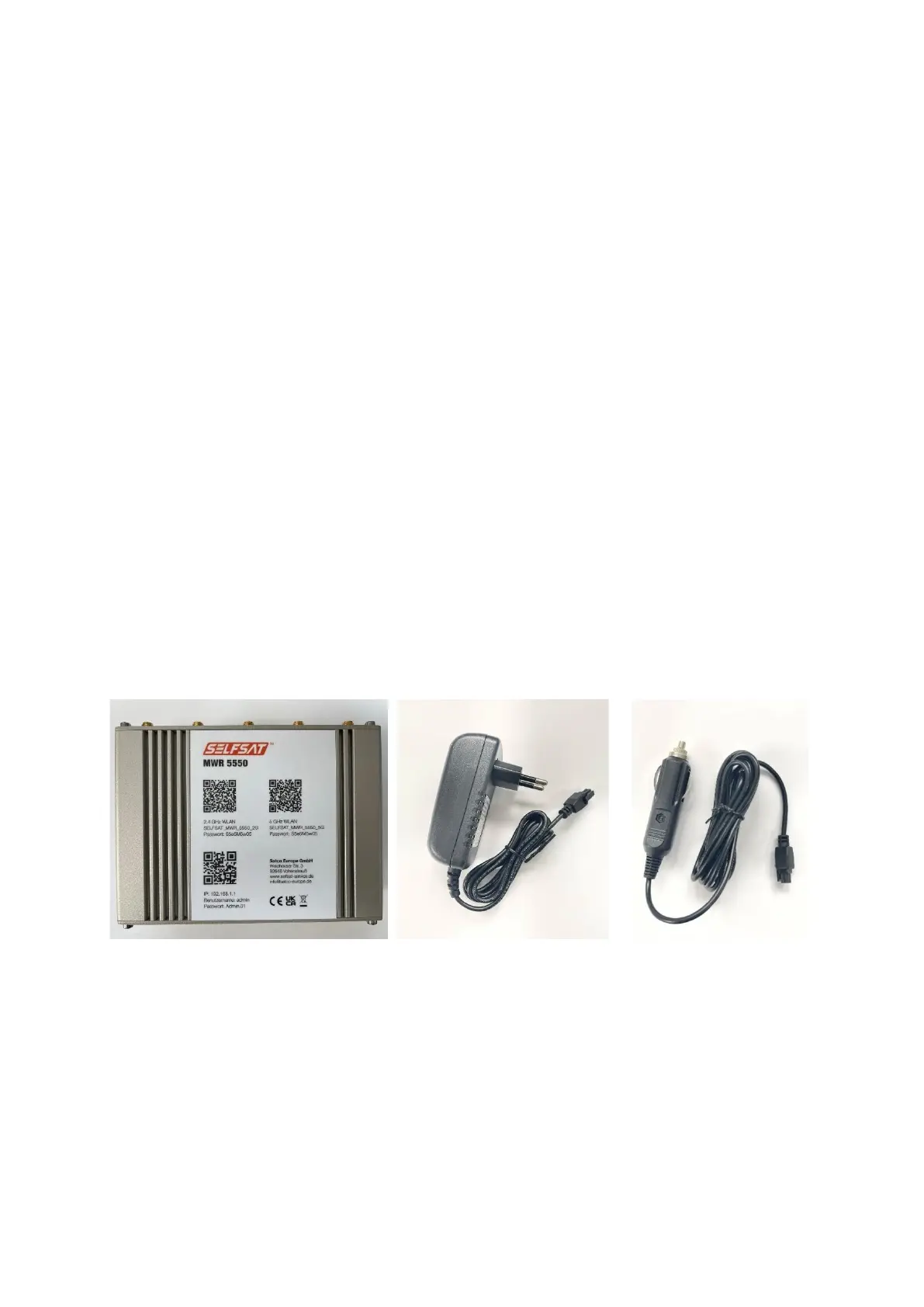 A) SELFSAT MWR 5550 B) EU 2-pin power supply C) 12 Volts DC