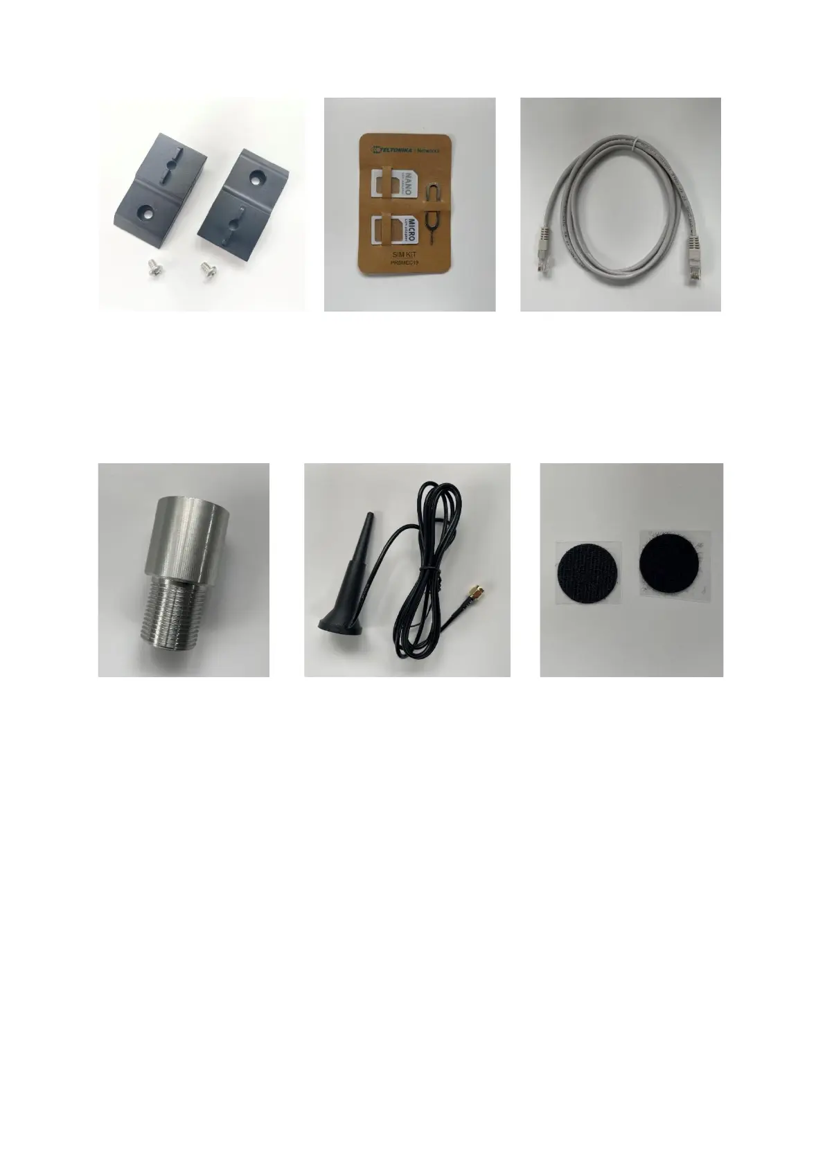 D) Surface montage-Kit E) 2 SIM card adapters E) 1,5 m Ethernet cable
